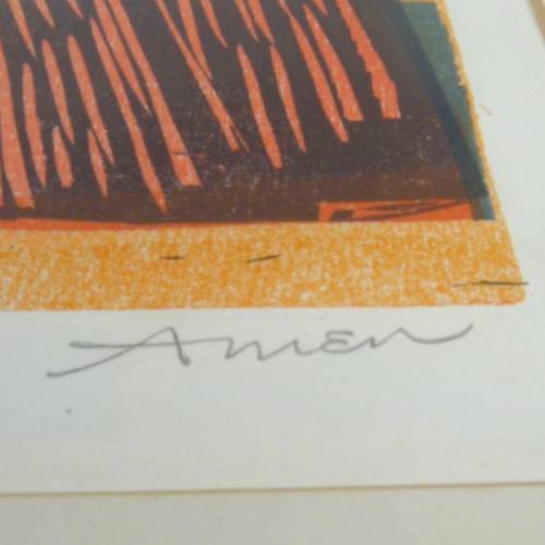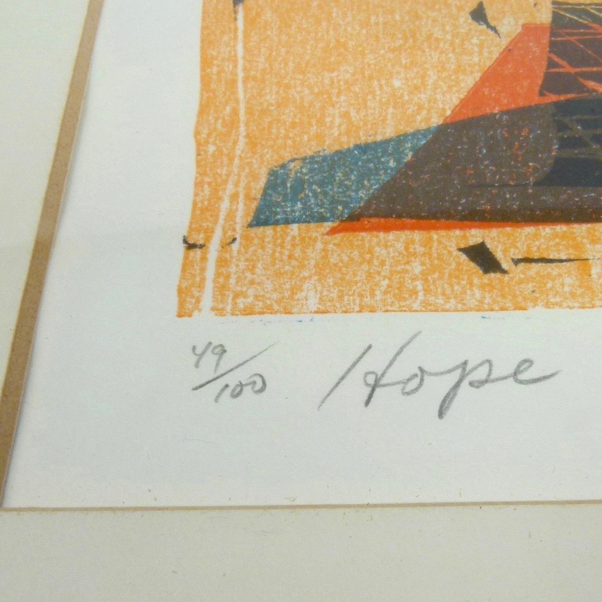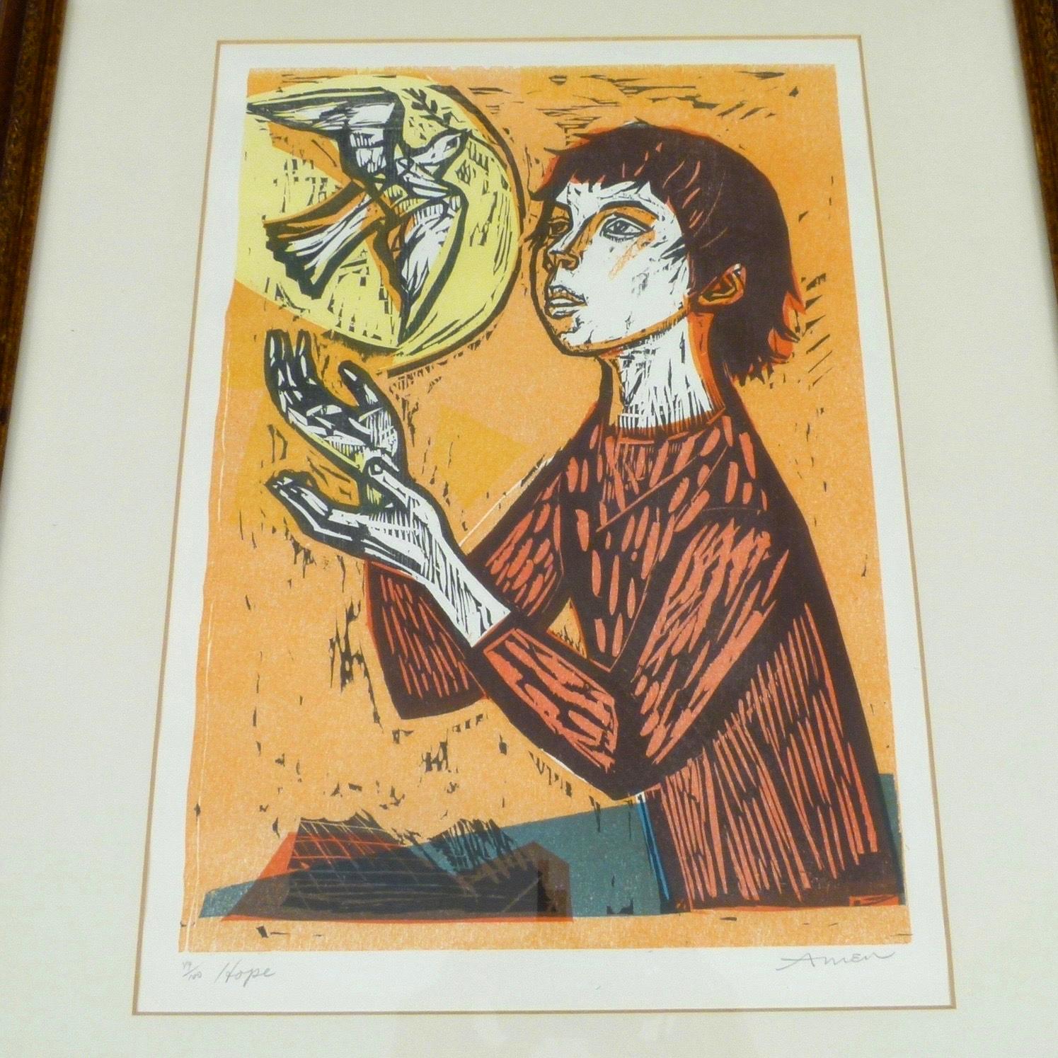 1950s signed and numbered woodblock print titled "Hope" by Irving Amen.