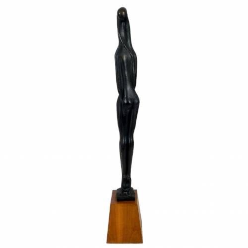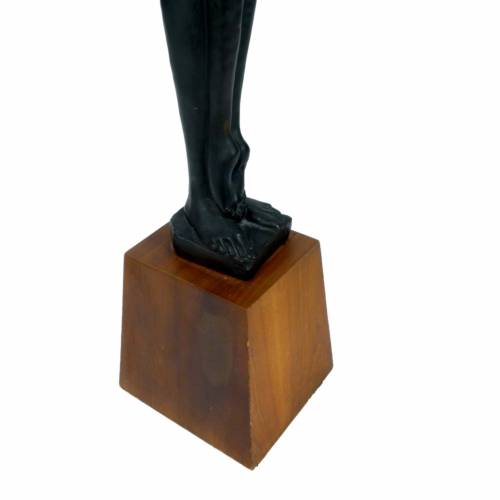 1960s cast bronze sculpture of embracing male and female figures. Sits on original walnut base.