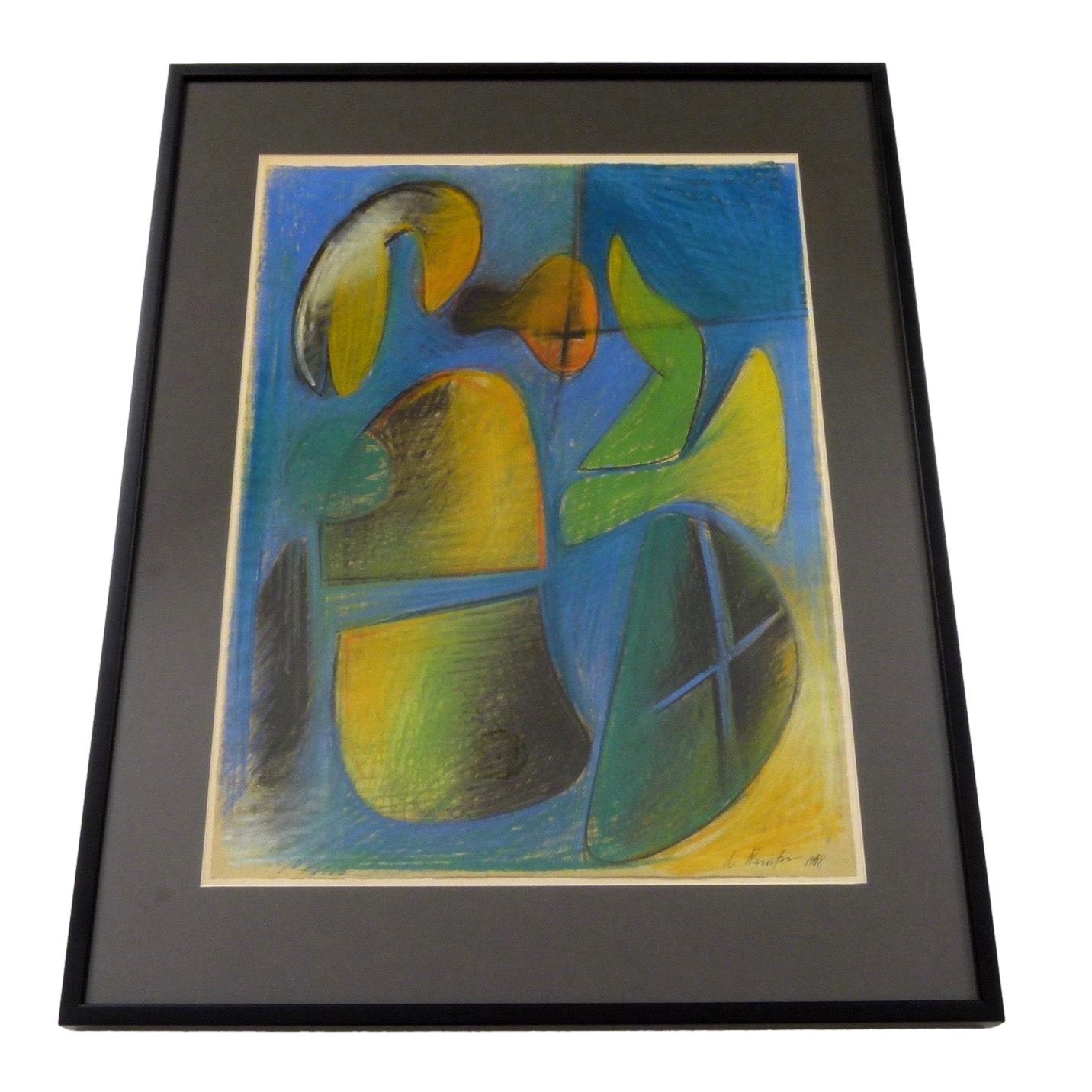 1968 abstract pastel on art paper by Walter Stomps (1929-2020). Signed and dated on at both ends. New Framing.