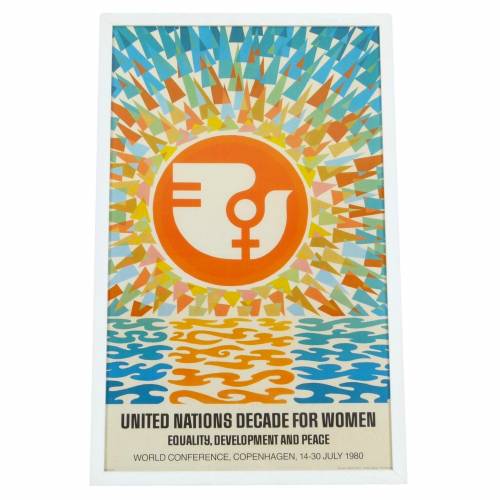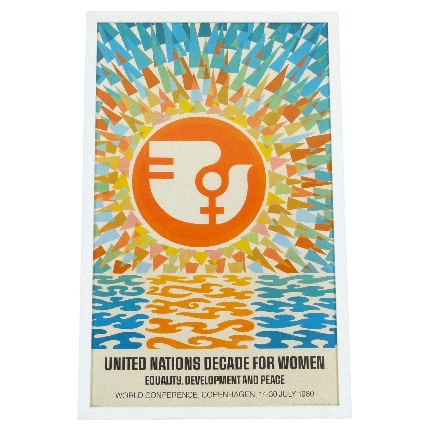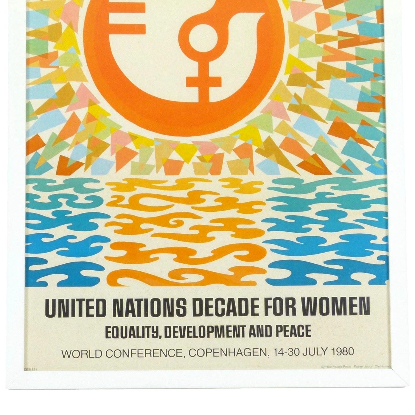 1980 "United Nations Decade For Women" poster for the World Conference in Copenhagen, Denmark. Poster designed by Ole Hamann. New framing.
