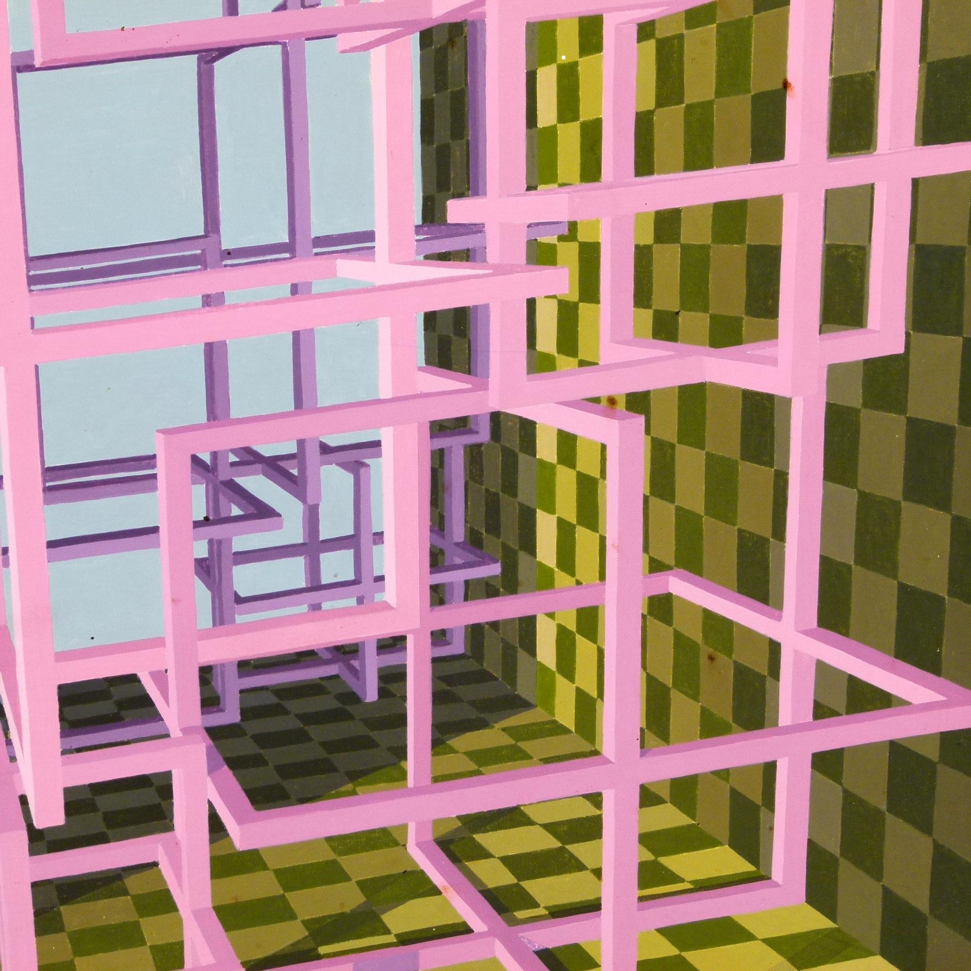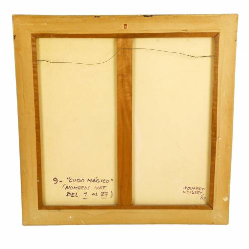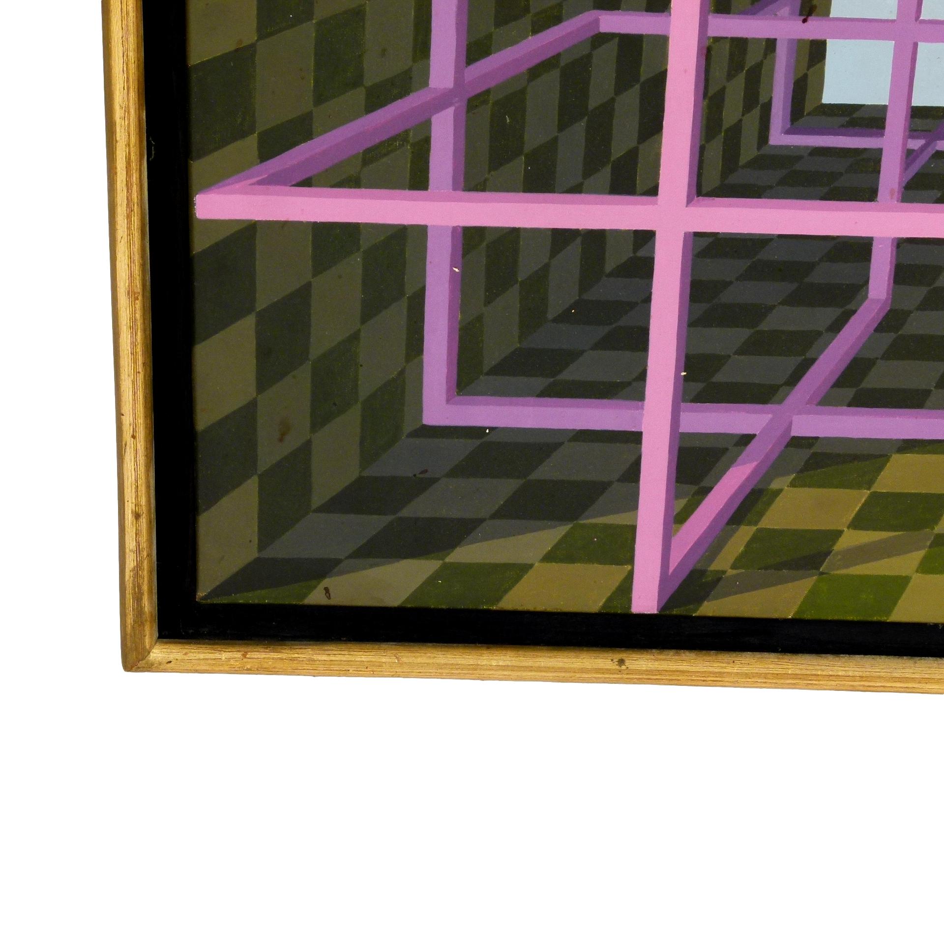 Eduardo Moisset de Espanés (b. 1937) was born in Córdoba in 1932. A celebrated architect and artist from Spain. This hard edge abstract painting is titled "Cubo Magico" and dated 1982.