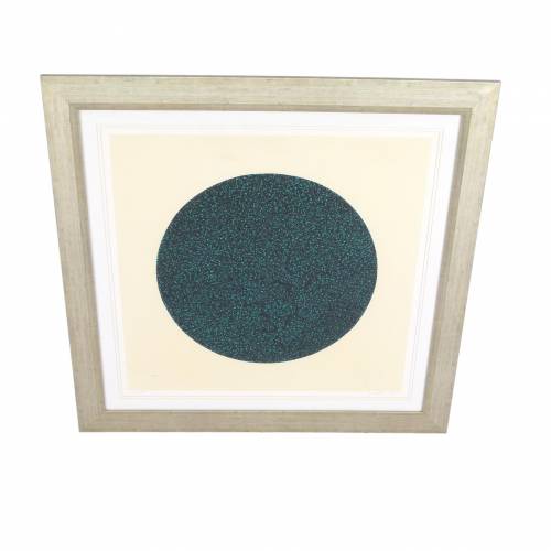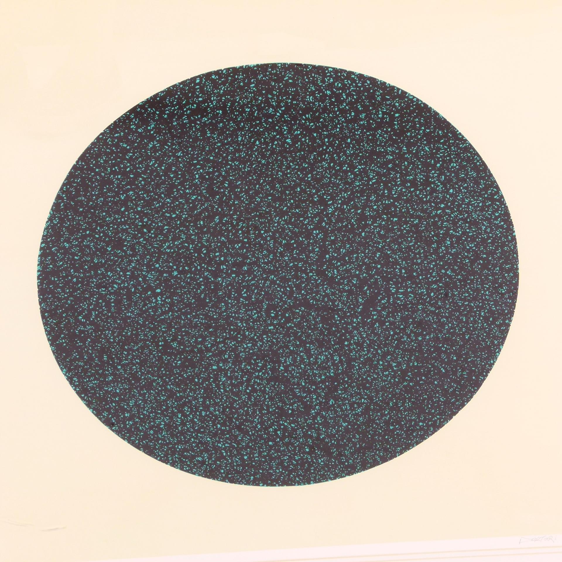 1970s abstract blue/green and black sphere lithograph. Illegibly signed artist proof.