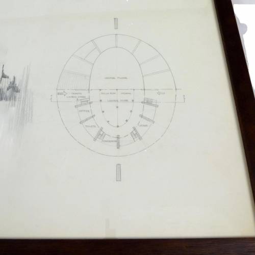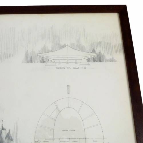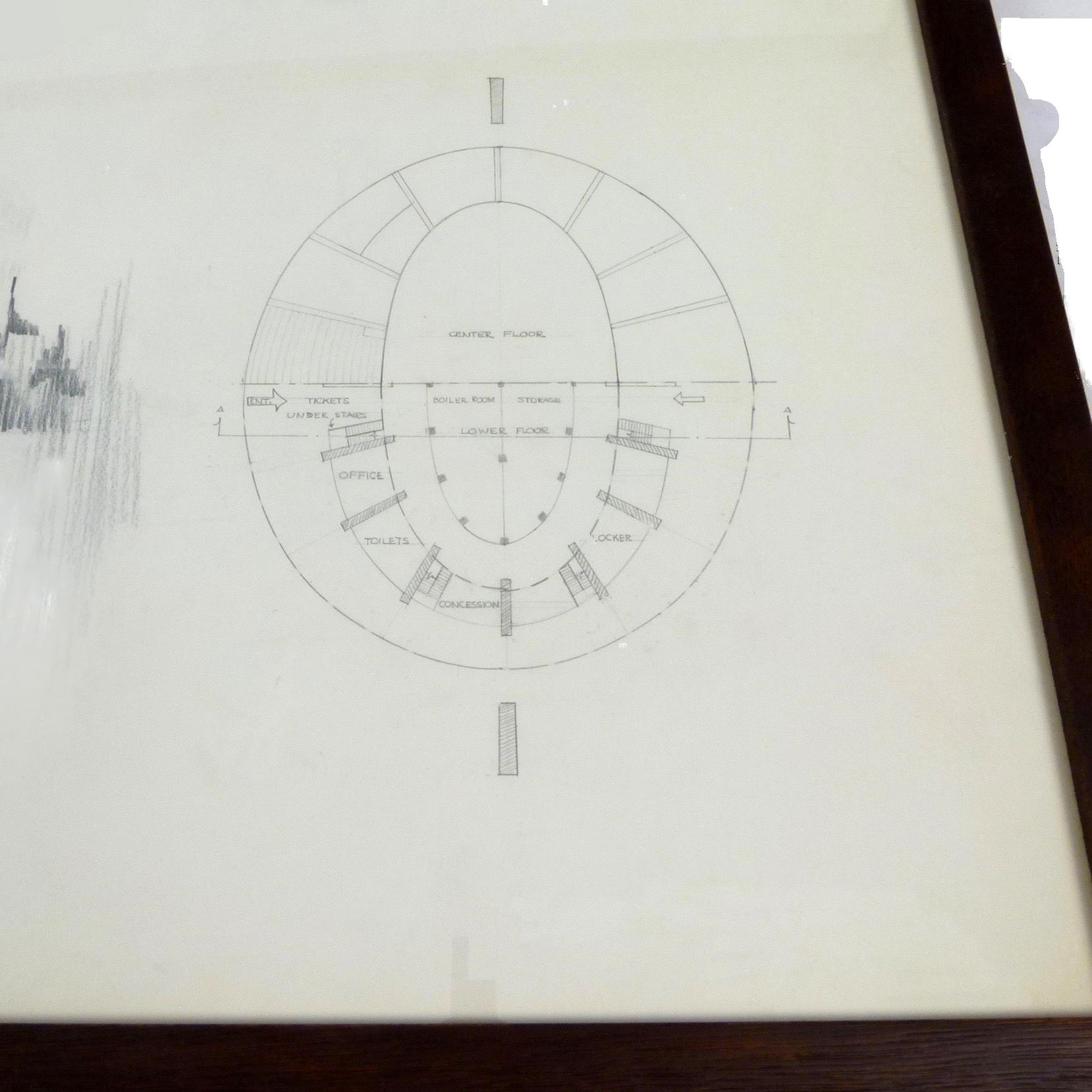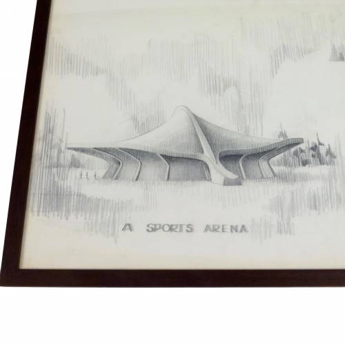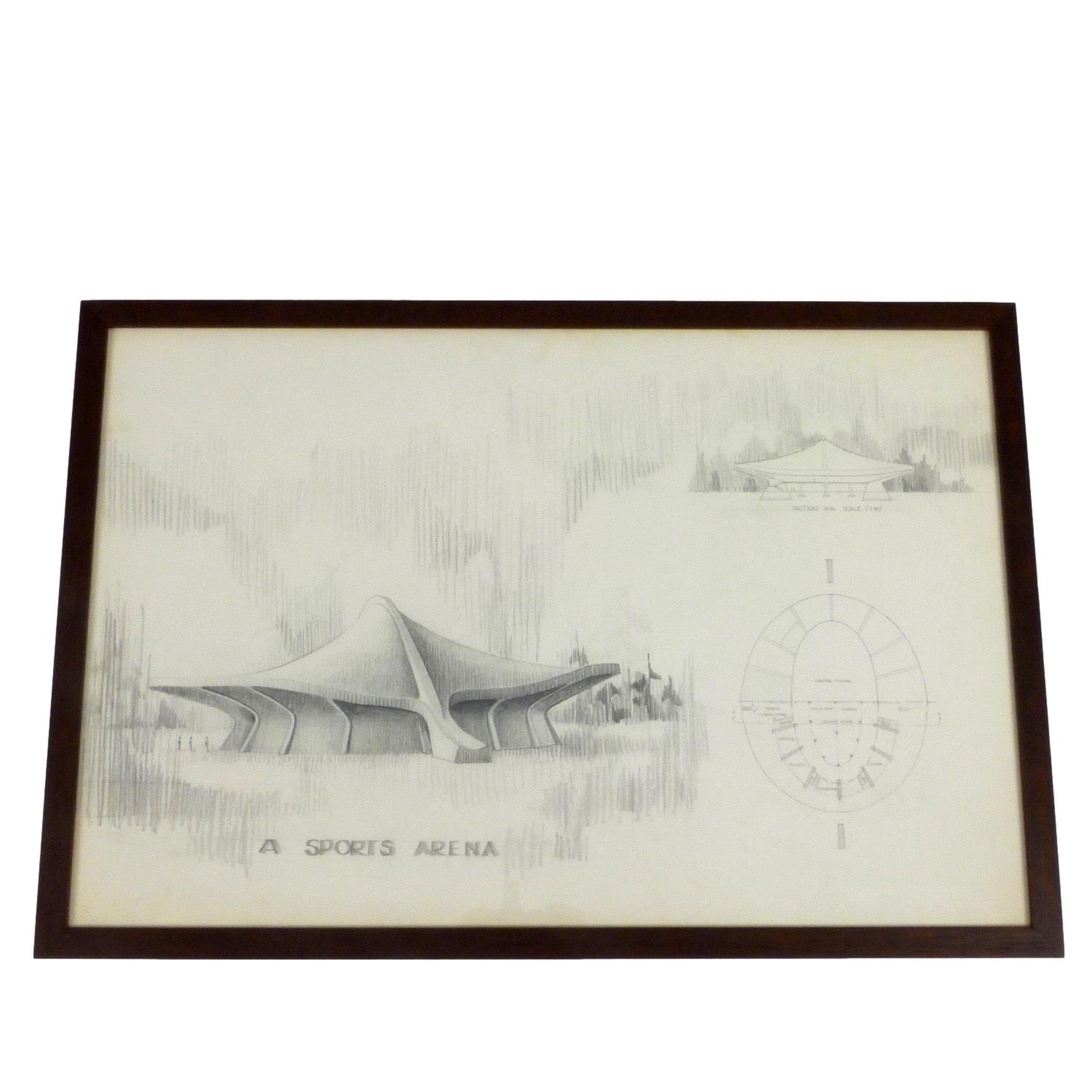 1960s original architectural rendering of an Arena by Atlanta Architect Bill Cloe. New Framing.