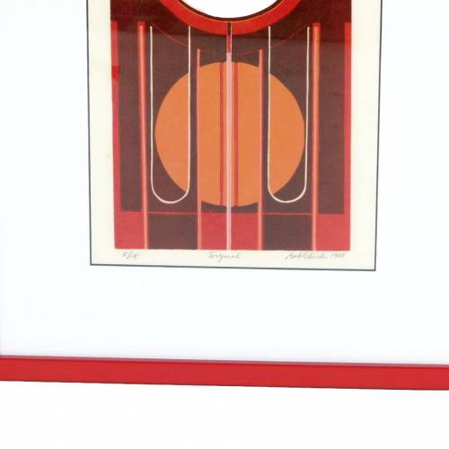 1969 graphic serigraph by California artist Bob Click (b.1931) titled "Signal", pencil signed and numbered 5/15.