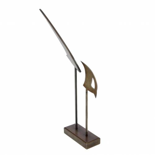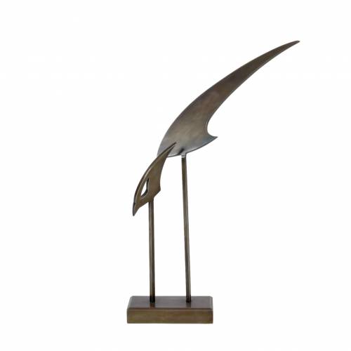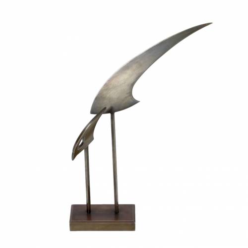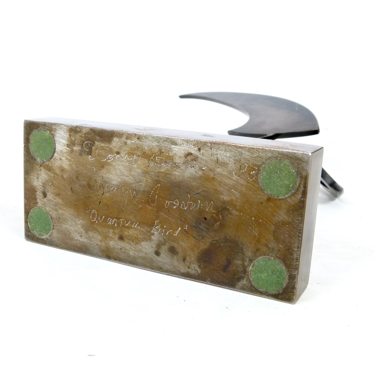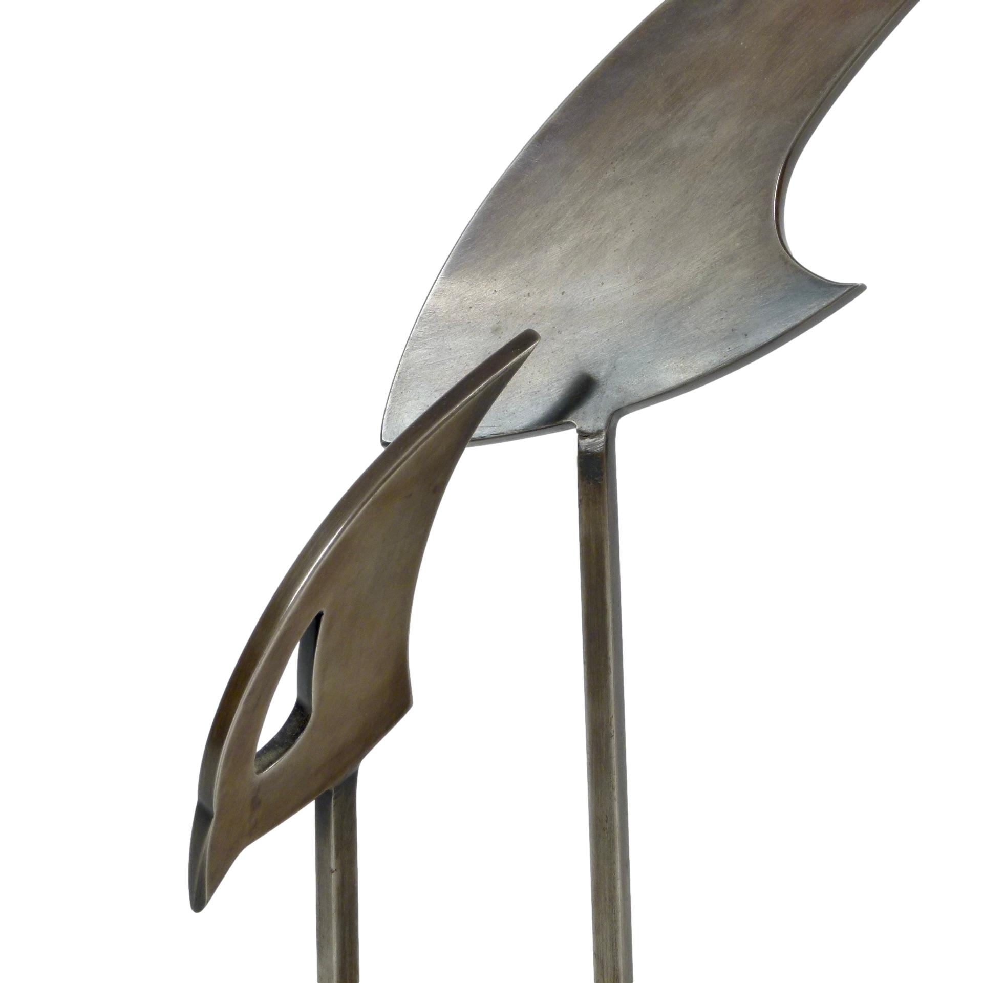 Stylized bird sculpture "Quantum Bird" by Tony Buchen and J. Goodwin in fabricated bronze, signed on base, early 1980s.