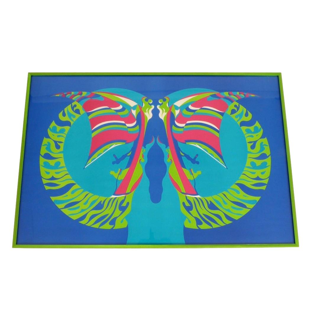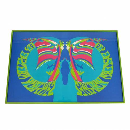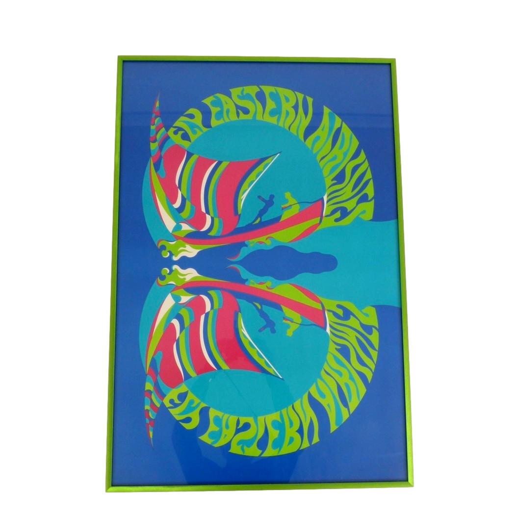 C.1970 psychedelic Eastern Airlines poster in green brushed metal frame. Can hang vertically or horizontally.