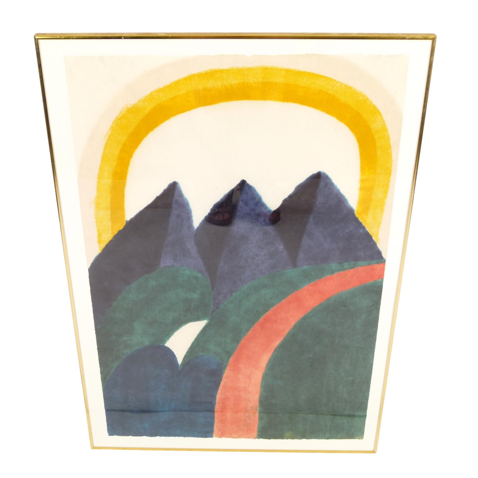 Carol Summers (1925-2016) hand signed woodcut "View from Home" circa 1974. Numbered 50/75.
