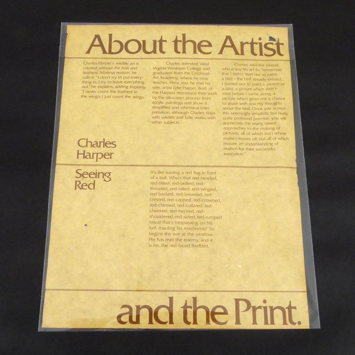 1977 signed and numbered serigraph titled "Seeing Red" by Charley Harper. New framing.