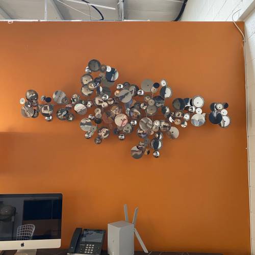 Chrome abstract "Raindrops" wall sculpture by Curtis Jere'. Newer authorized production signed and dated 2007.