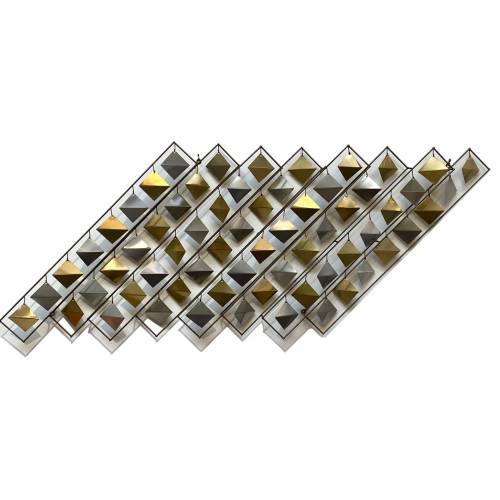 1970s geometric wall sculpture with reversible silver/gold metal diamond cutouts.