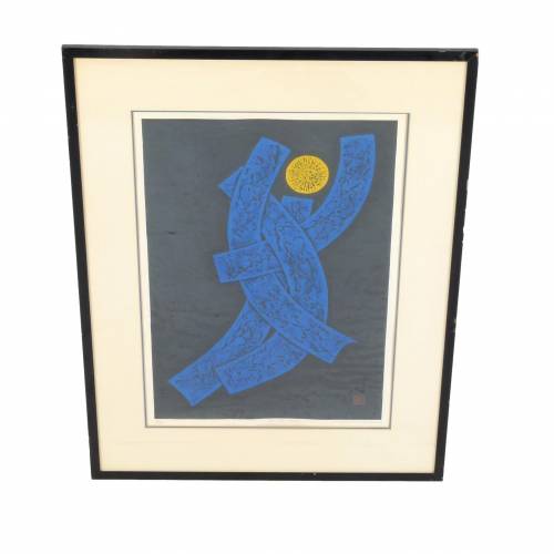 Pencil signed and numbered 23/105 "Dance" woodblock by Haku Maki, Japan.