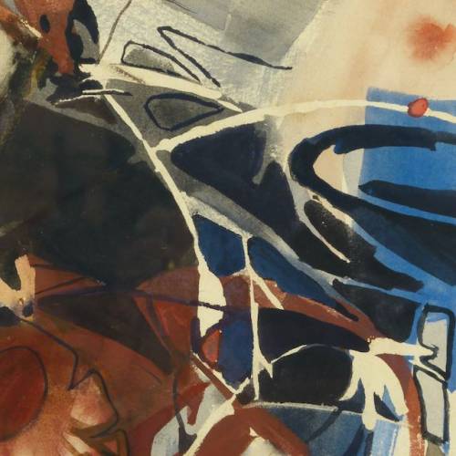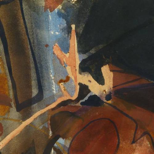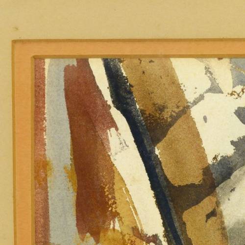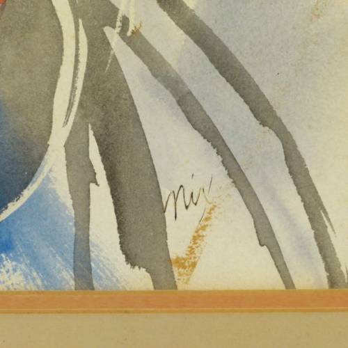 Late 1960s original abstract in watercolor and ink by Martha Nix, signed bottom right. A graduate of the Atlanta College of Art this piece is typical of her work using warm tones and loose brush strokes.
