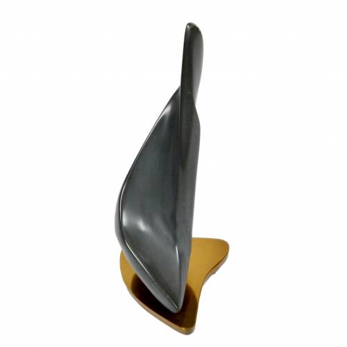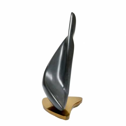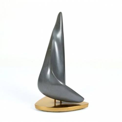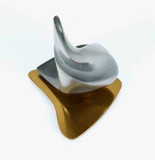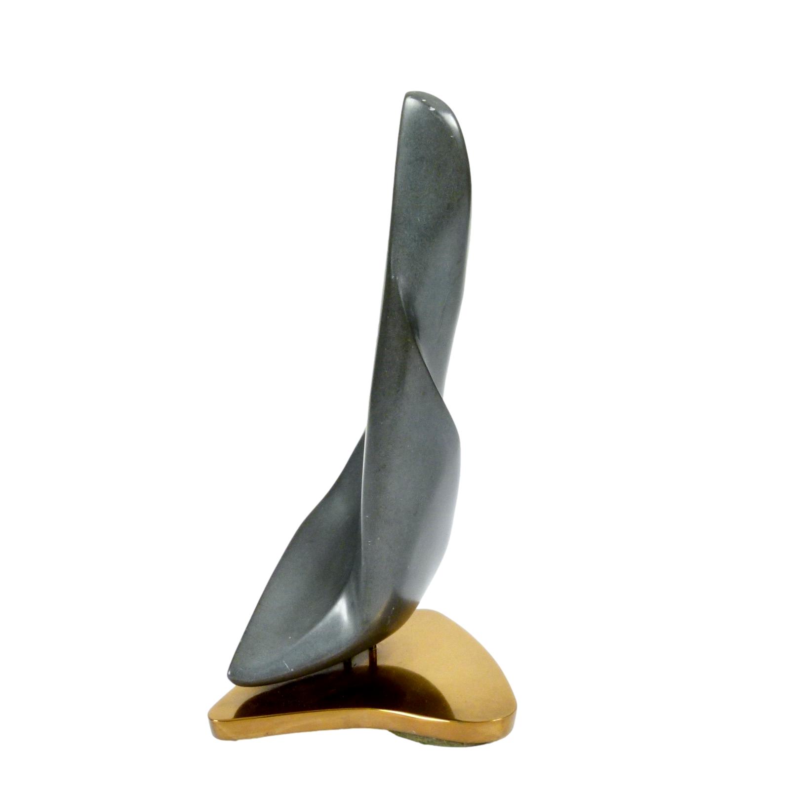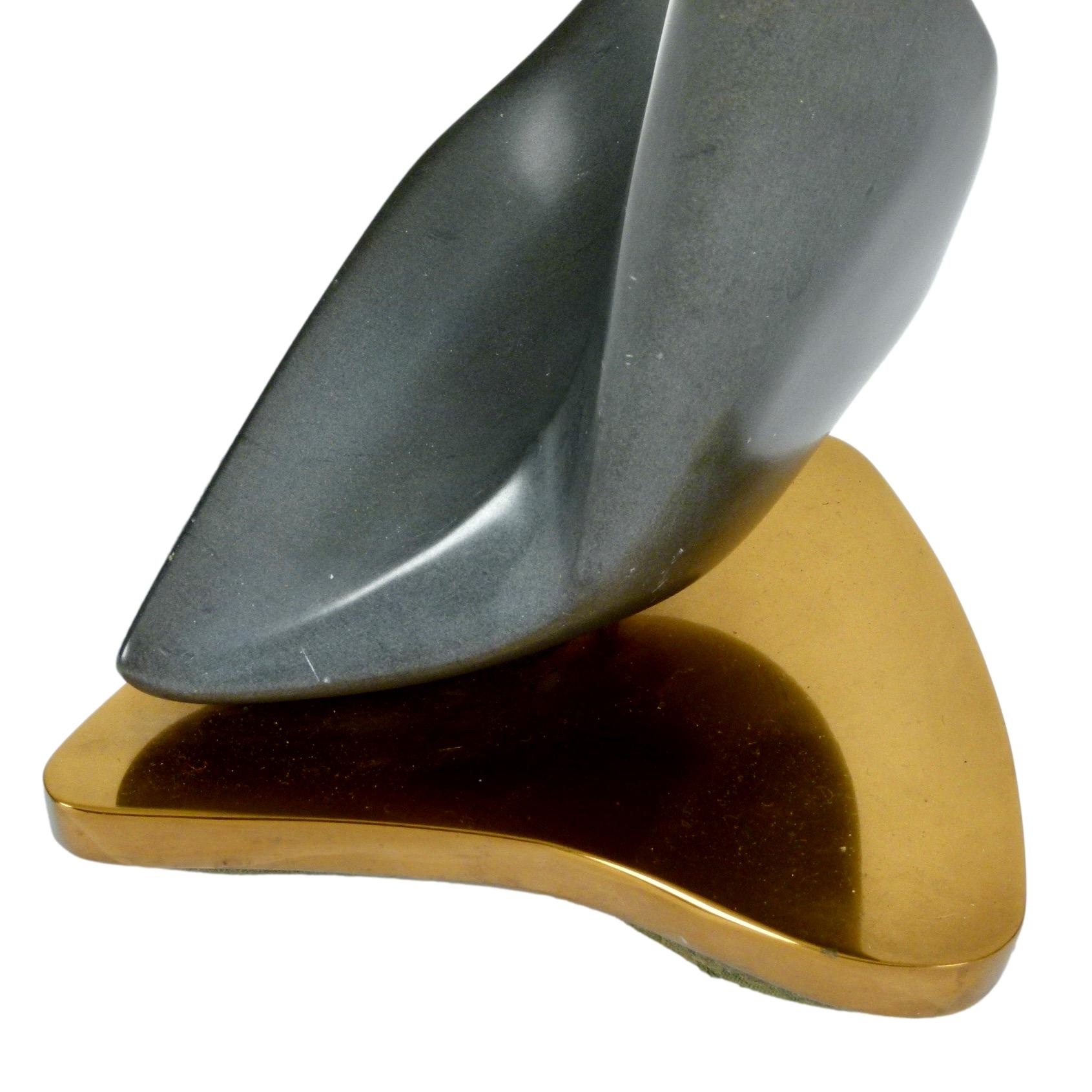 Abstract stone sculpture in the round on brass base by Mary Anthony, c.1960 titled "Nose Dive".