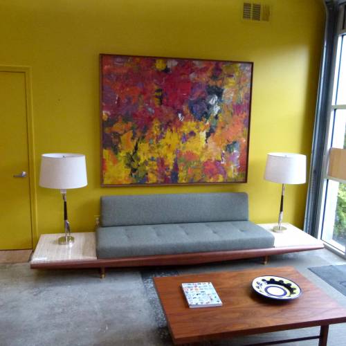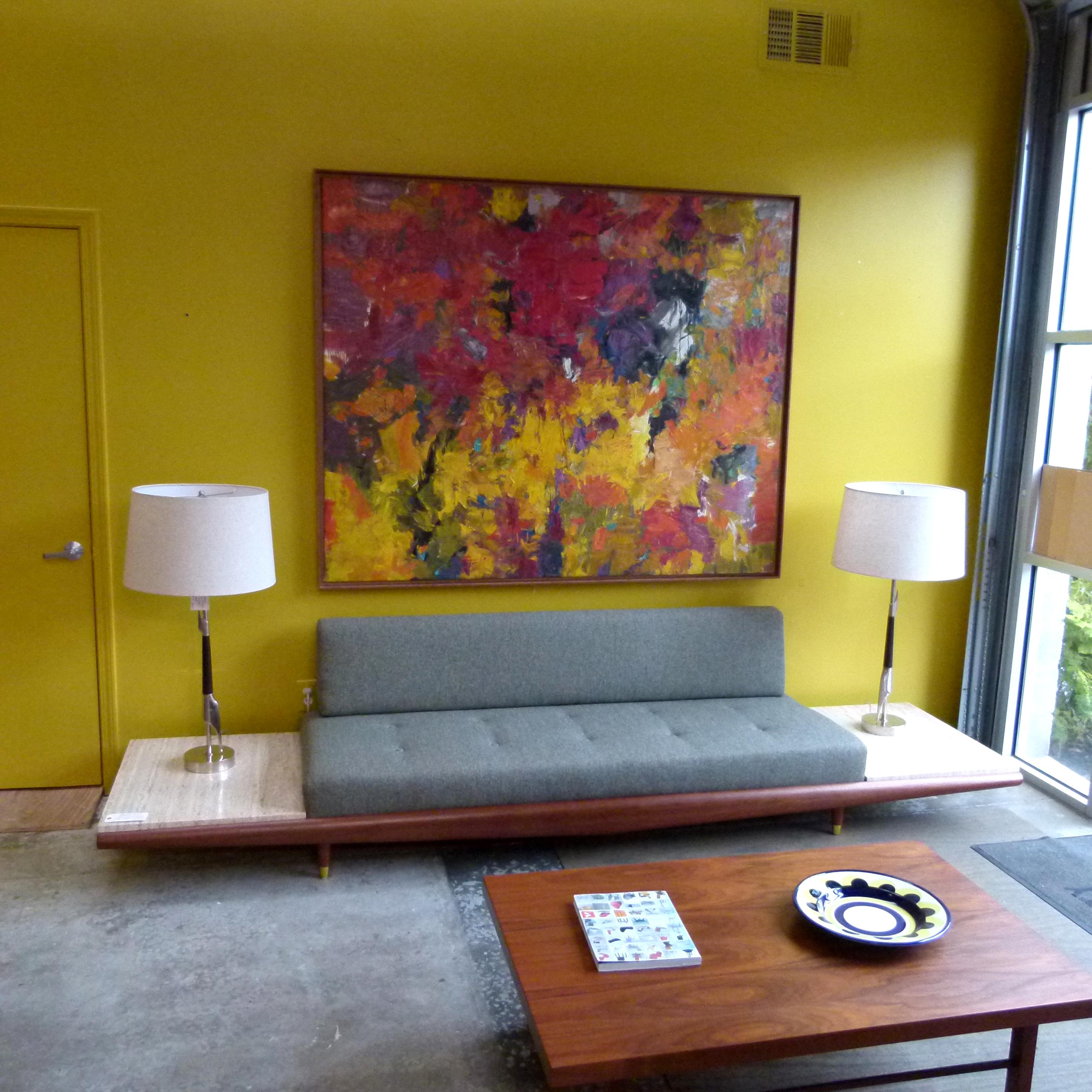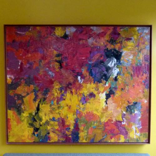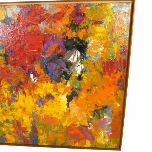 Monumental 1960s abstract oil on canvas by Carol Haerer (1933-2002). Later framing.