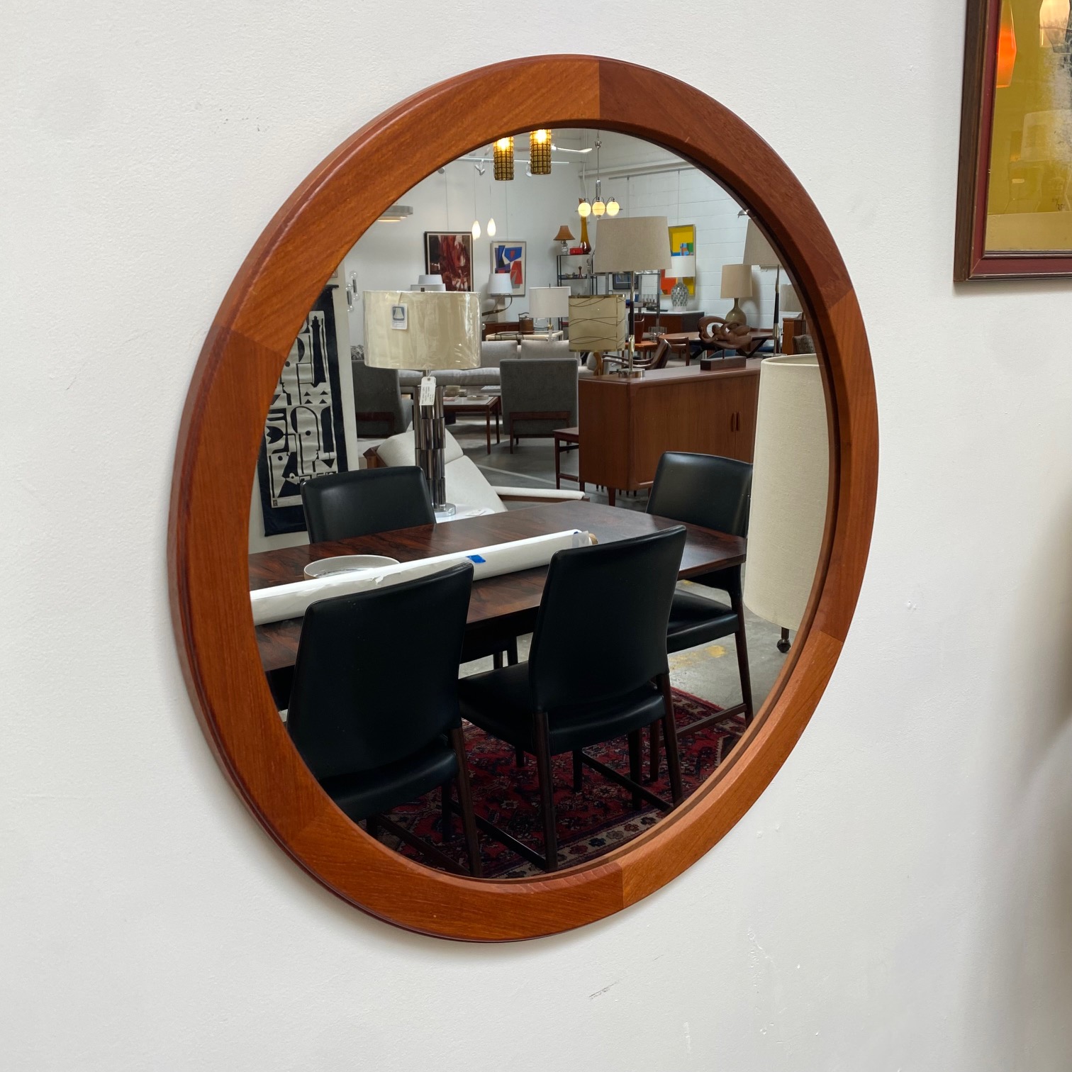 Round teak mirror by Aksel Kjersgaard, Denmark.