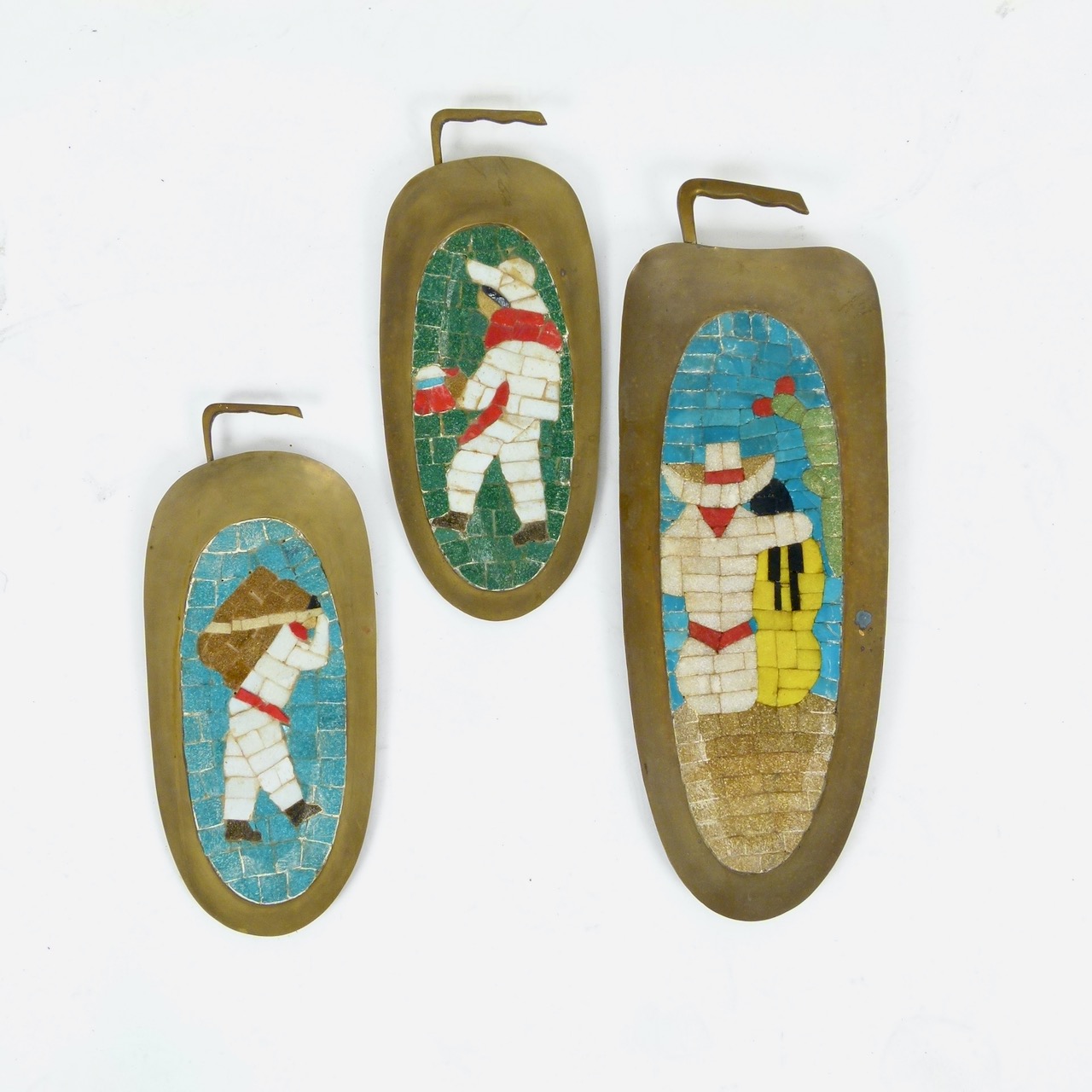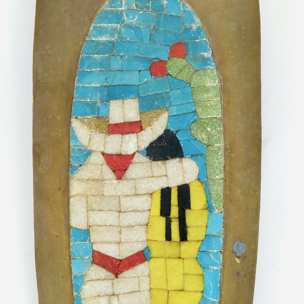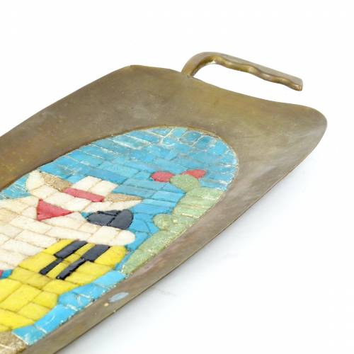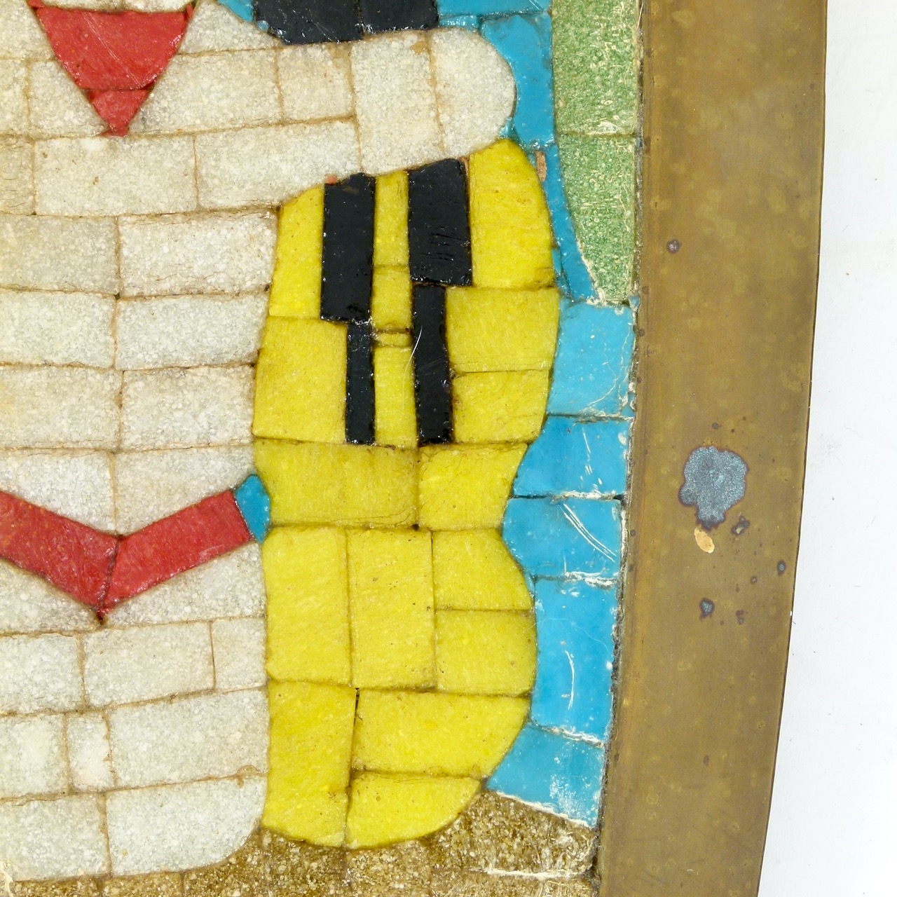 Large glass tile mosaic on solid brass tray/plaque by Salvador Teran, Taxco, Mexico.