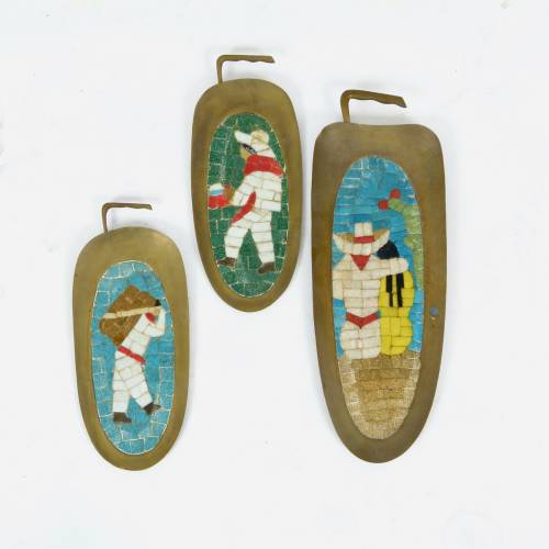 Salvador Teran Large Glass Mosaic on Brass Wall Tray