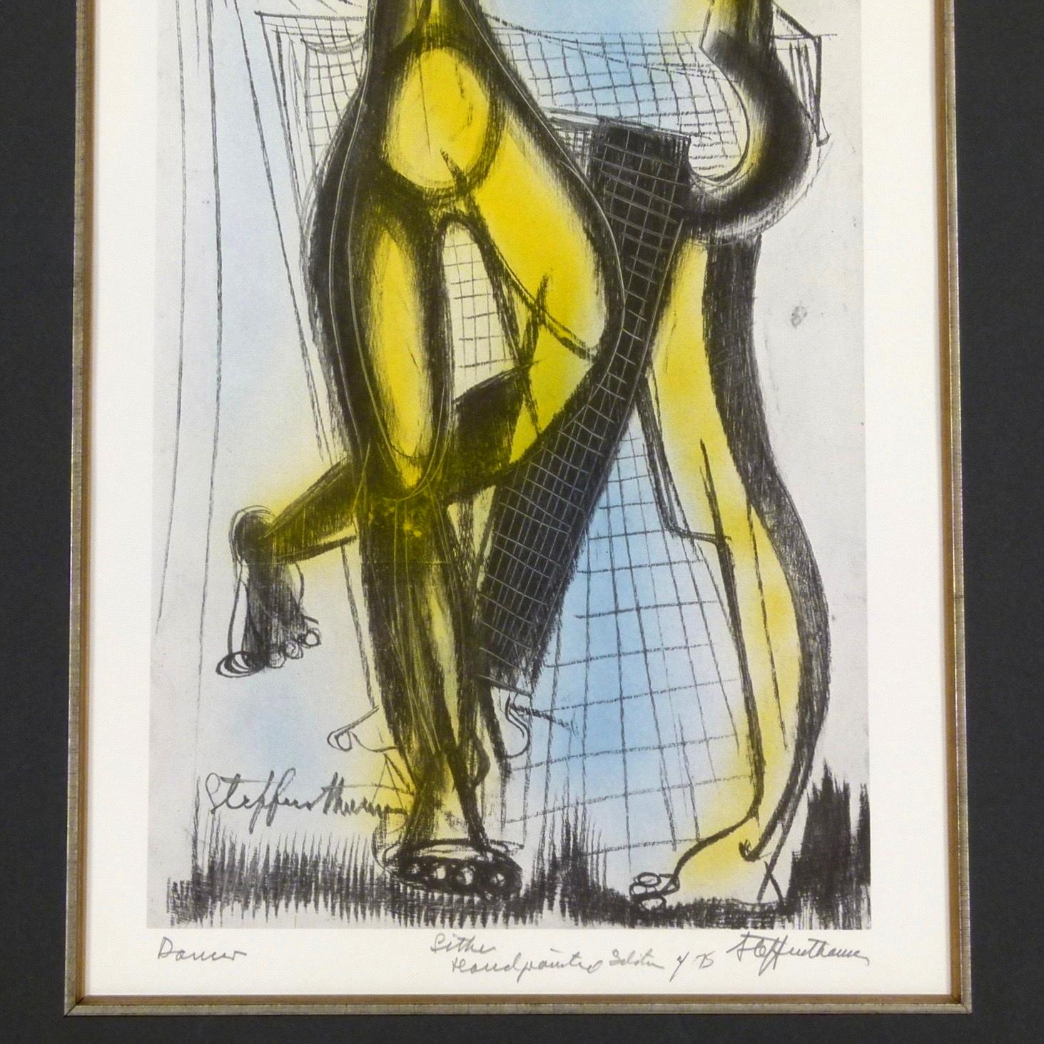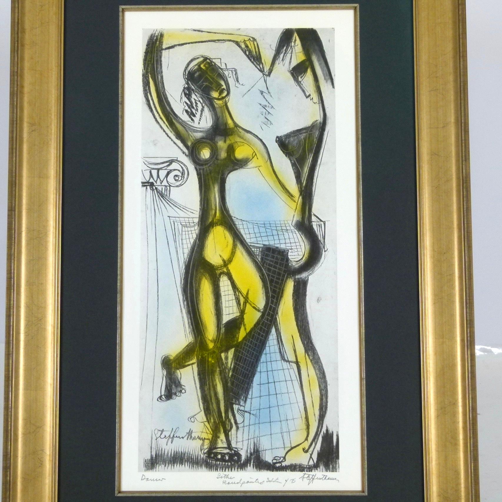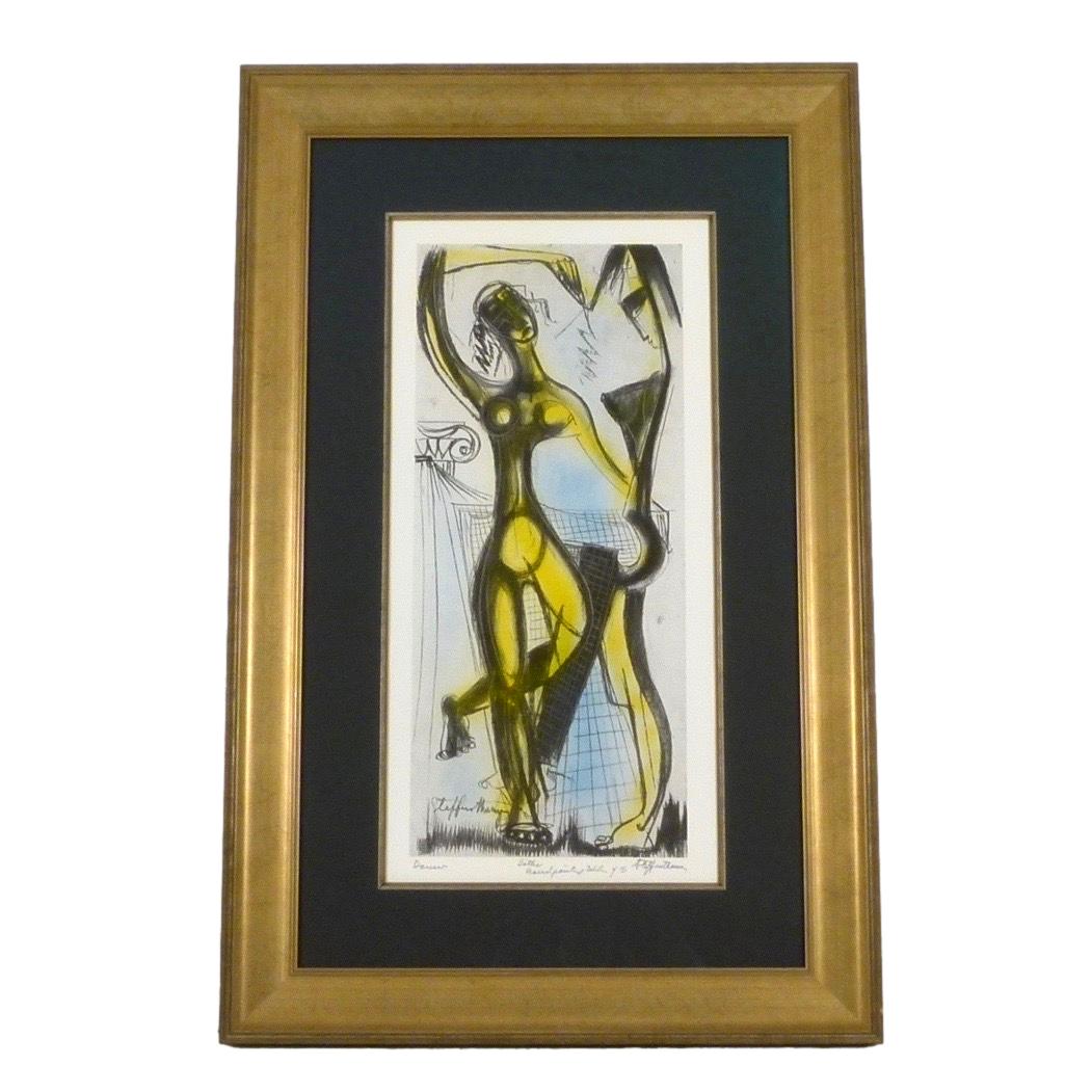 C.1970 "Dancers" lithograph, signed and titled with hand painted "selection of 75" embellishments by listed Atlanta artist Steffen Thomas (1906-1990).