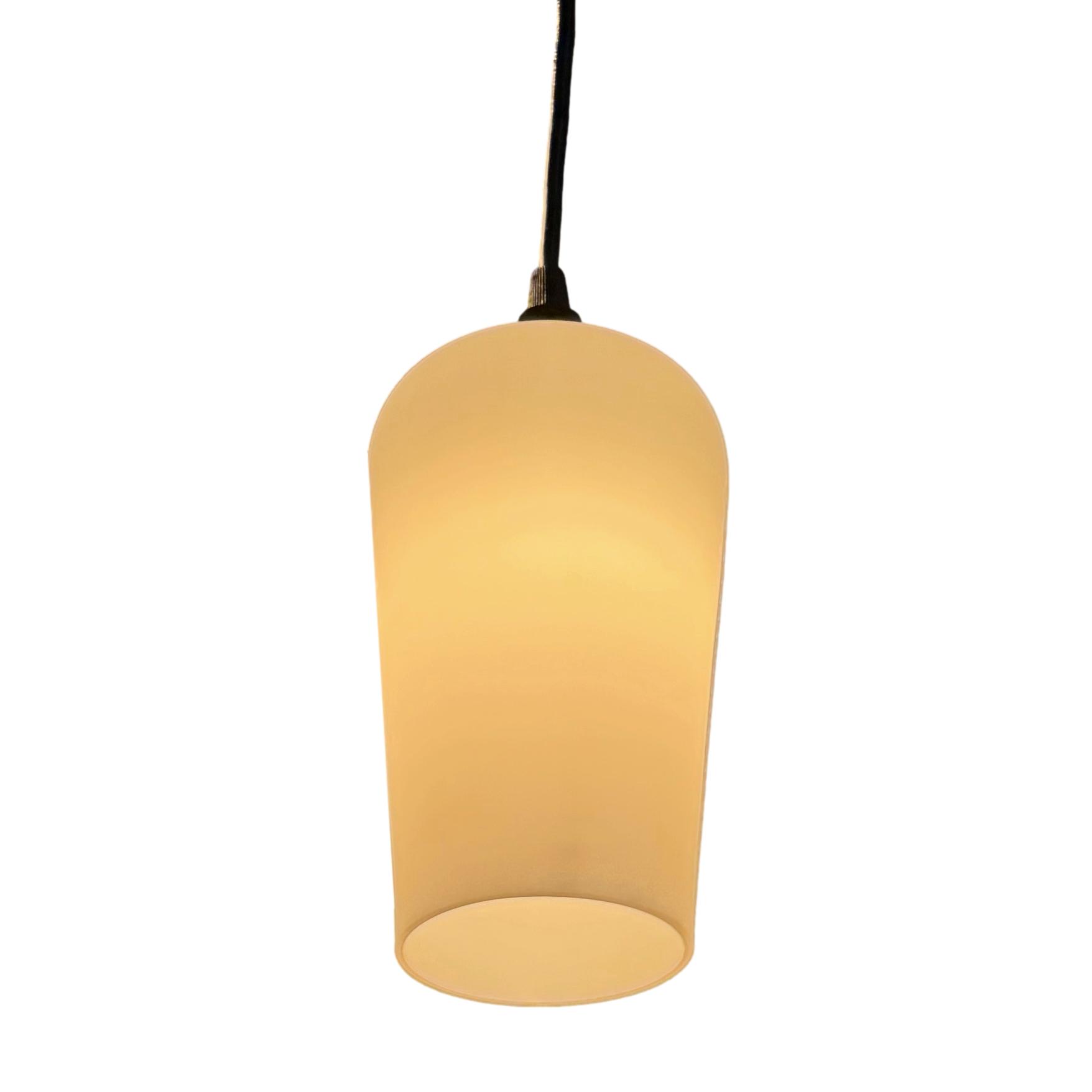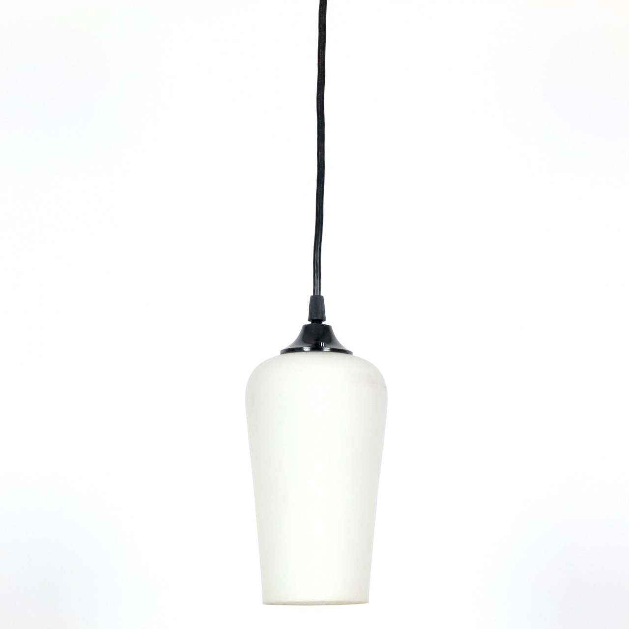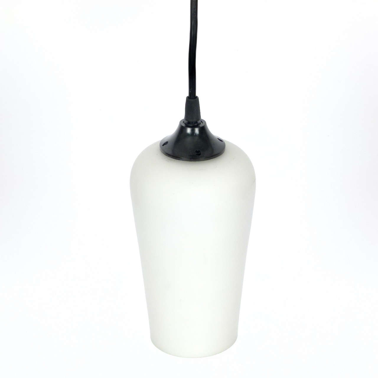 Pendant light with 1960s frosted cased glass shade and new black wiring and hardware.