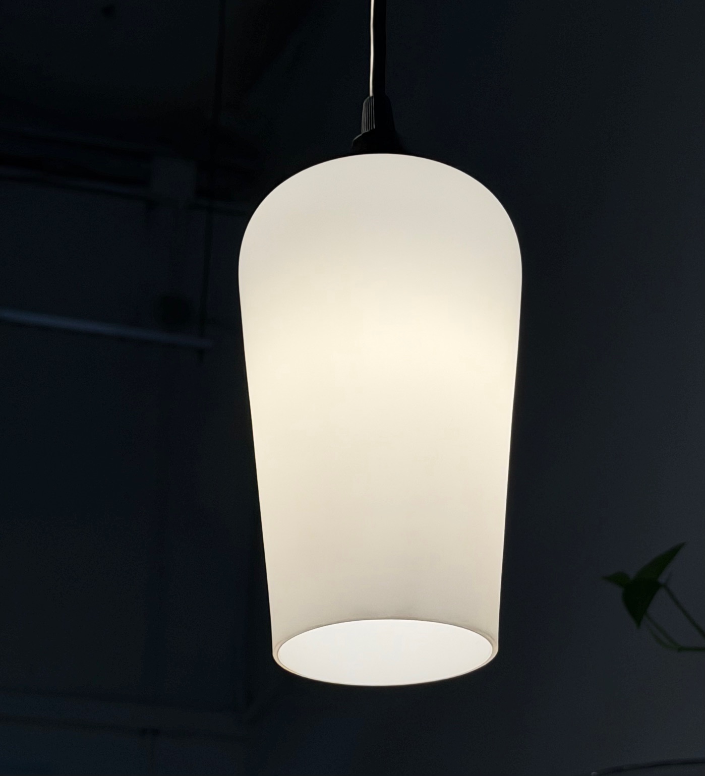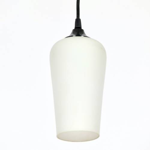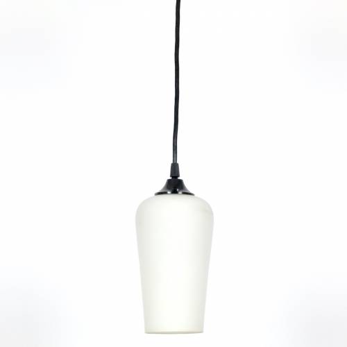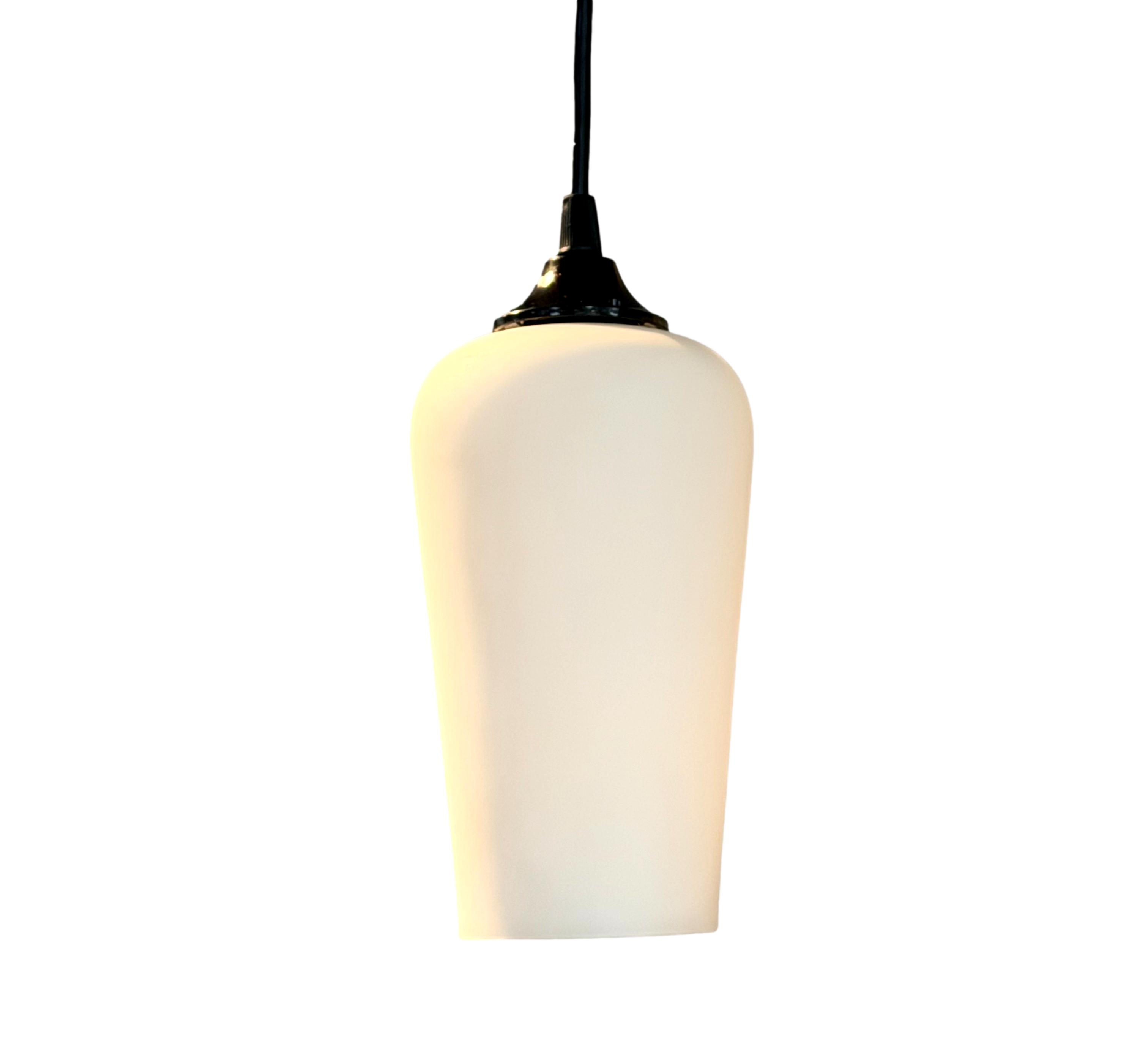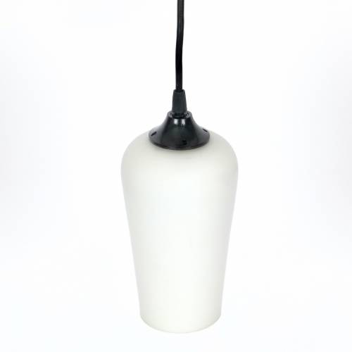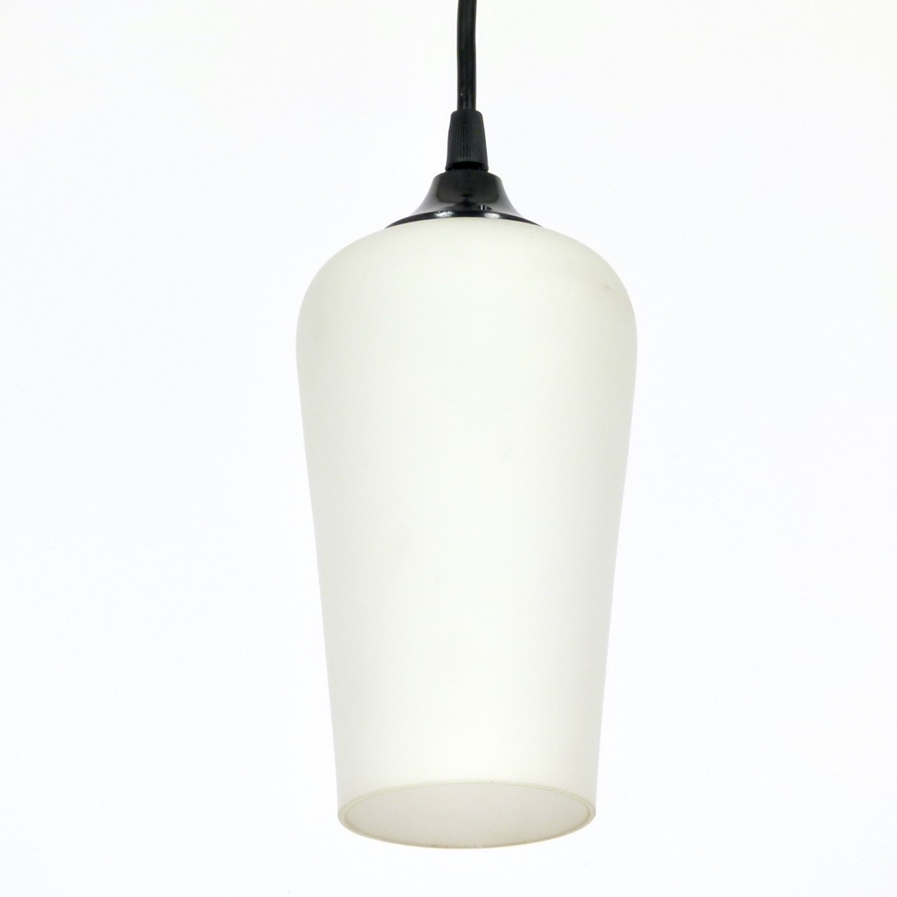 Pendant light with 1960s frosted cased glass shade and new black wiring and hardware.