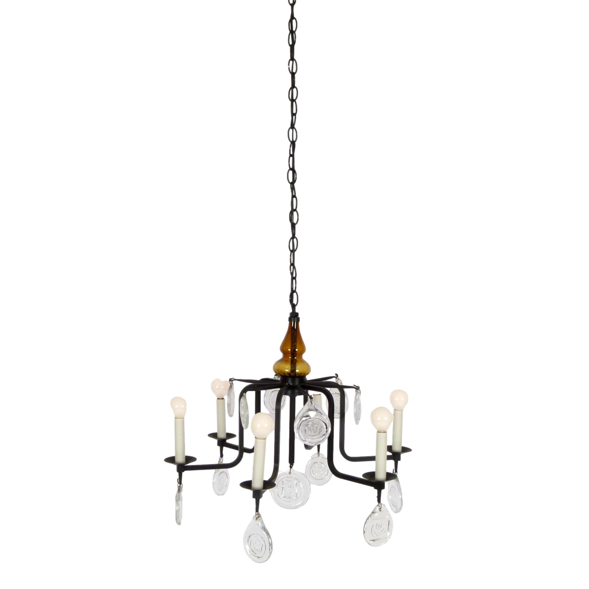 Purchase 1960s Erik Hoglund Iron and Glass Chandelier, Sweden