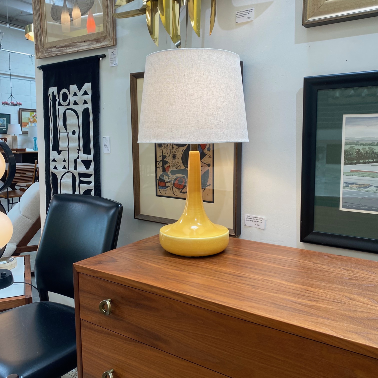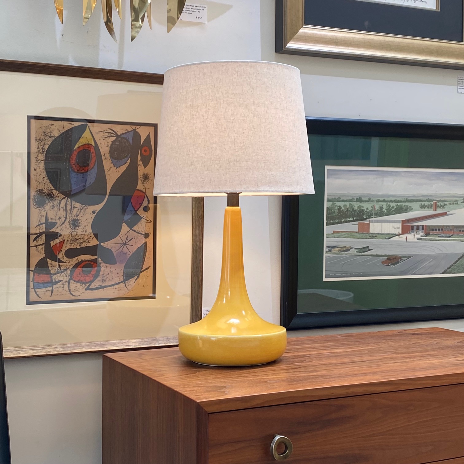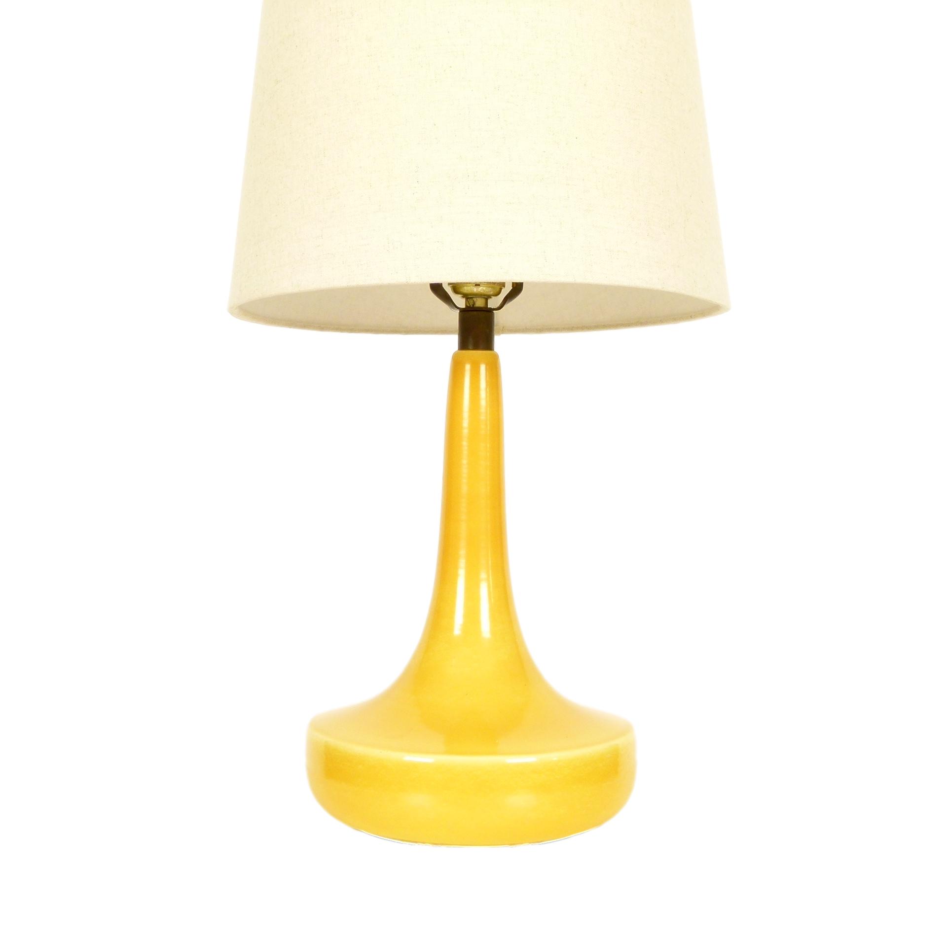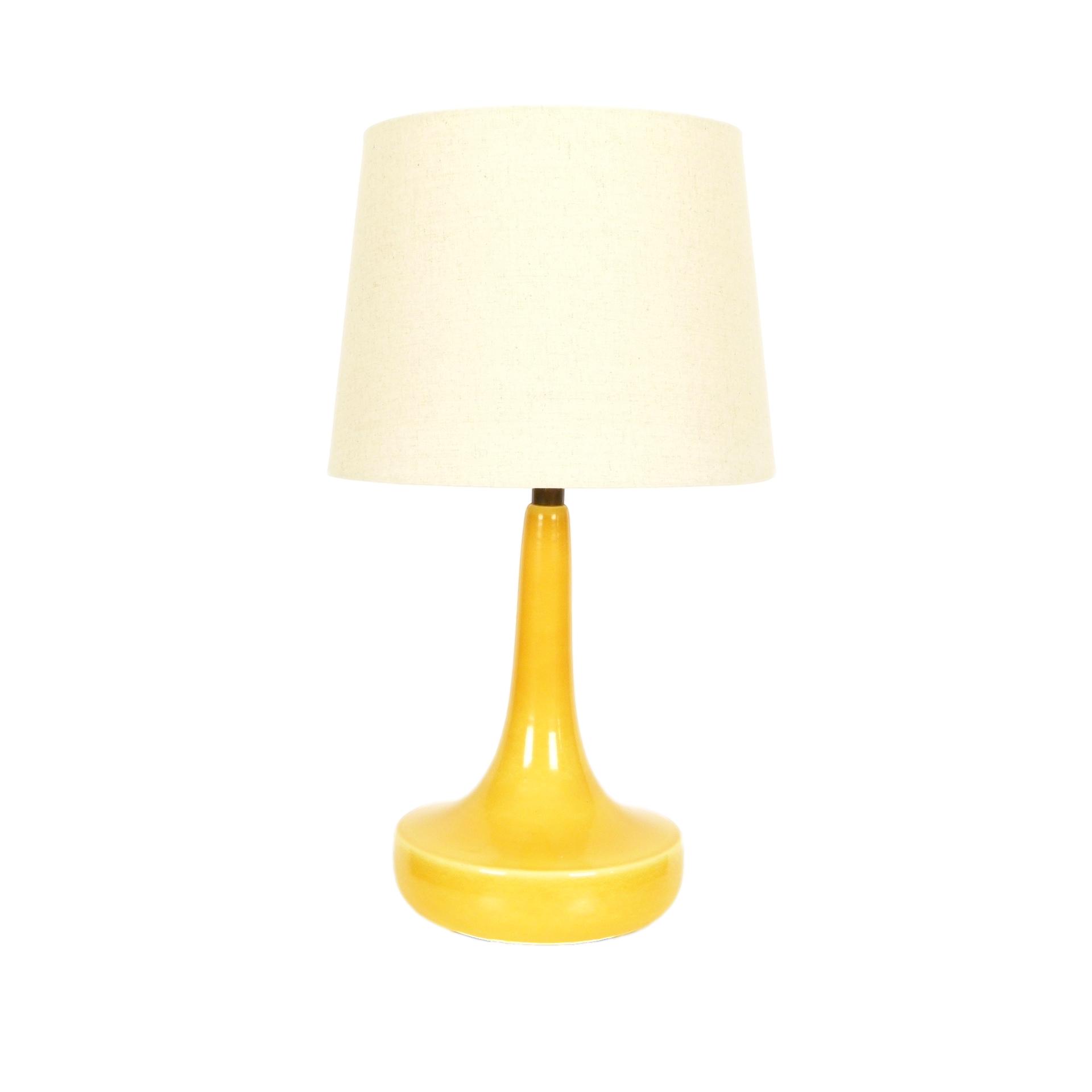 1960s yellow ceramic table lamp "Model 1400" by Lotte & Gunnar Bostlund, Sweden.