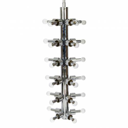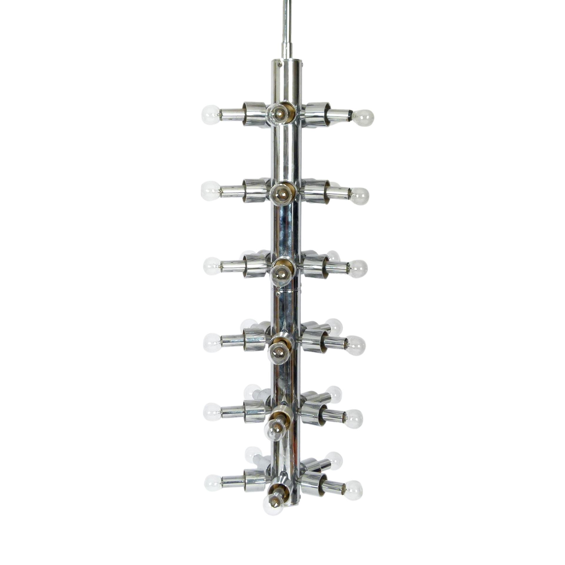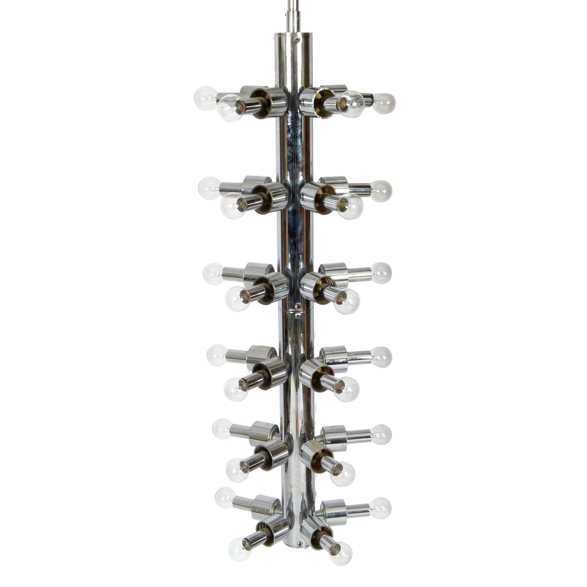 Large cylindrical shaped chrome 30-bulb sputnik lamp by Lightolier, 1970s.