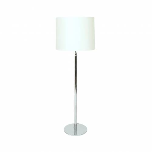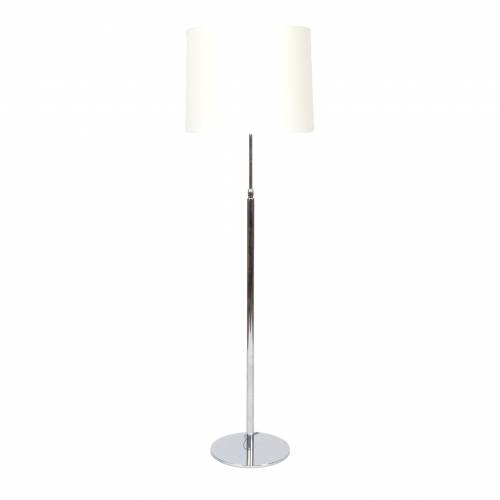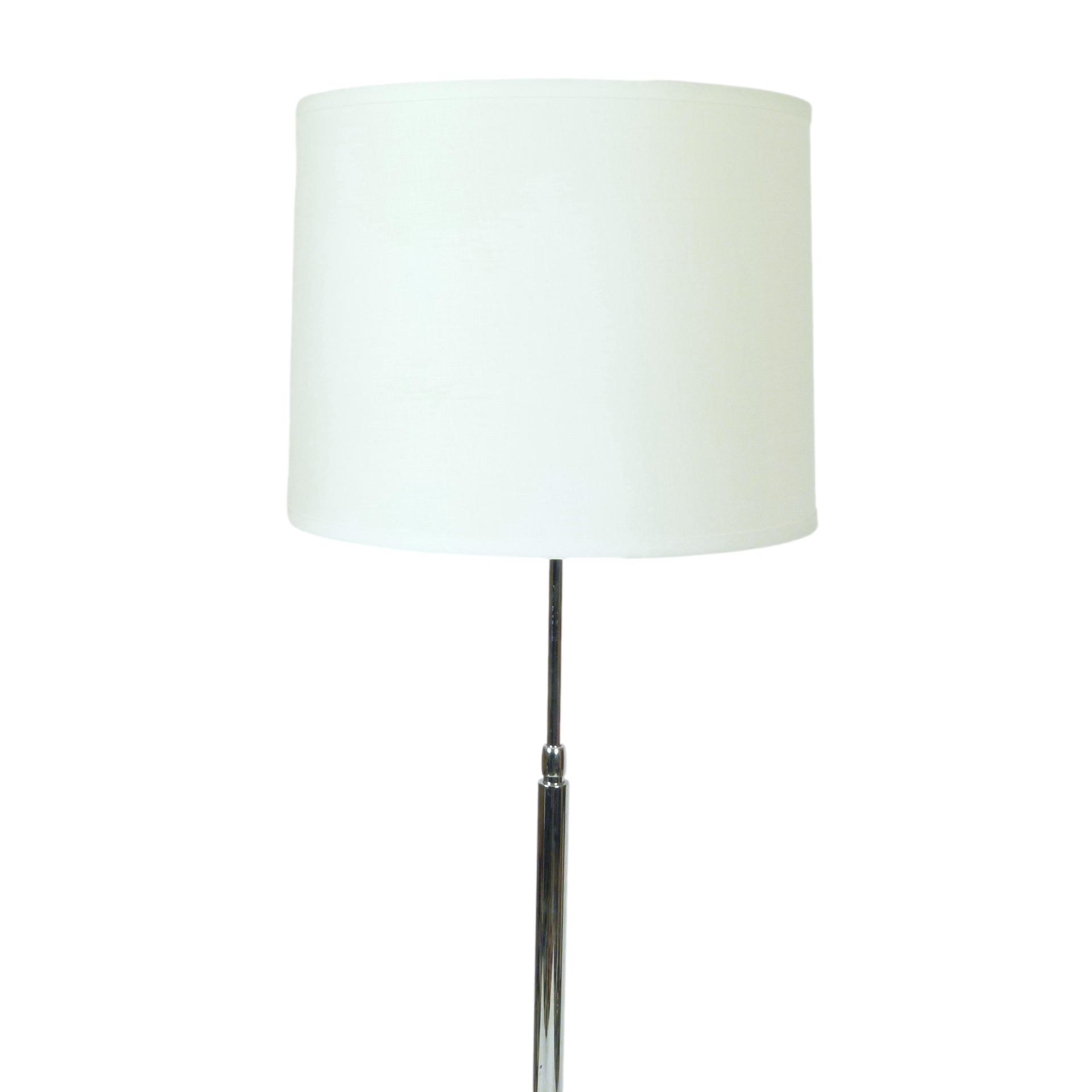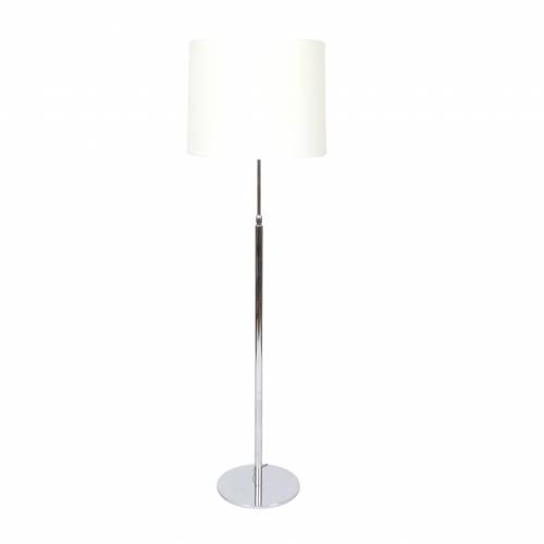 Chrome base floor lamp with adjustable height by Nessen, new linen drum shade