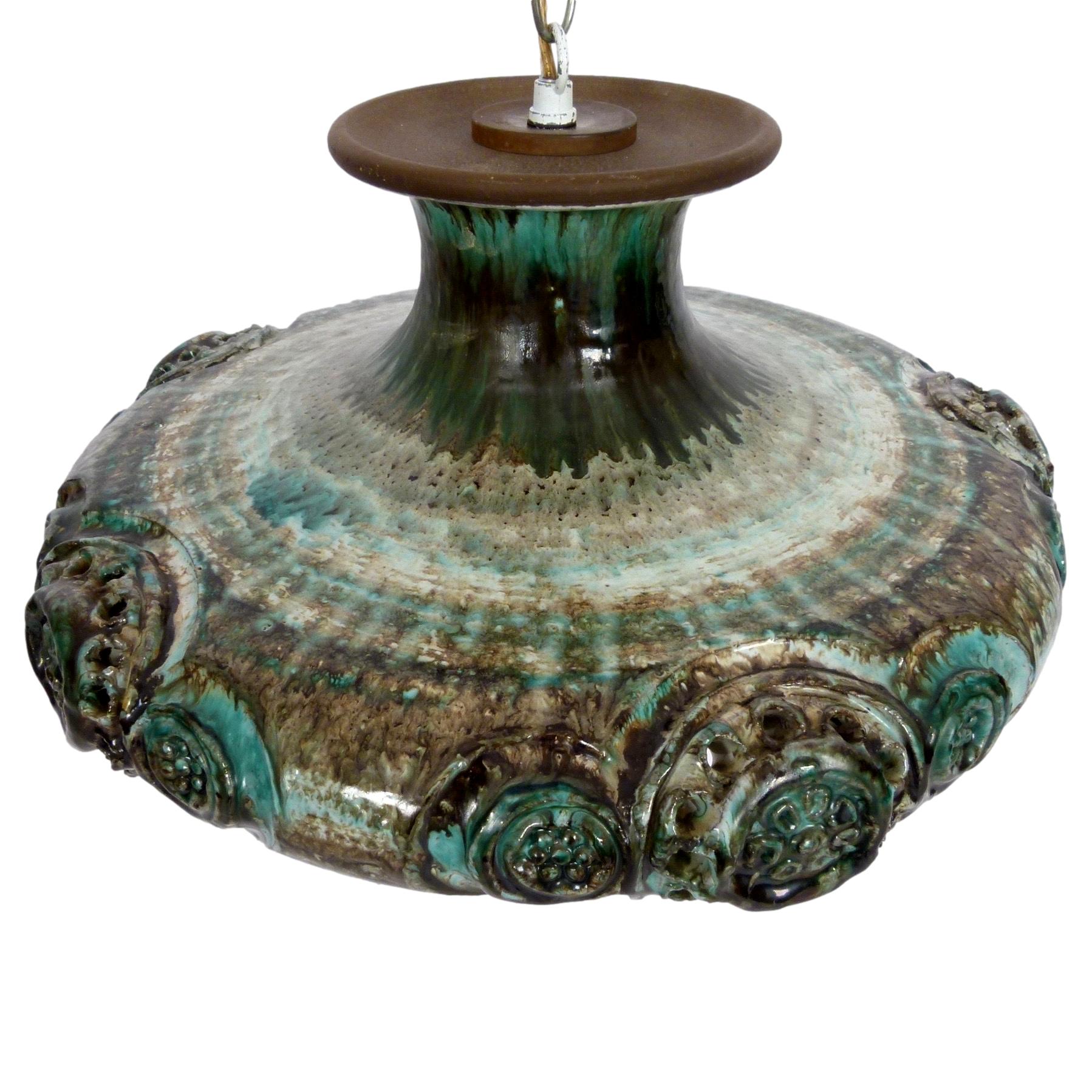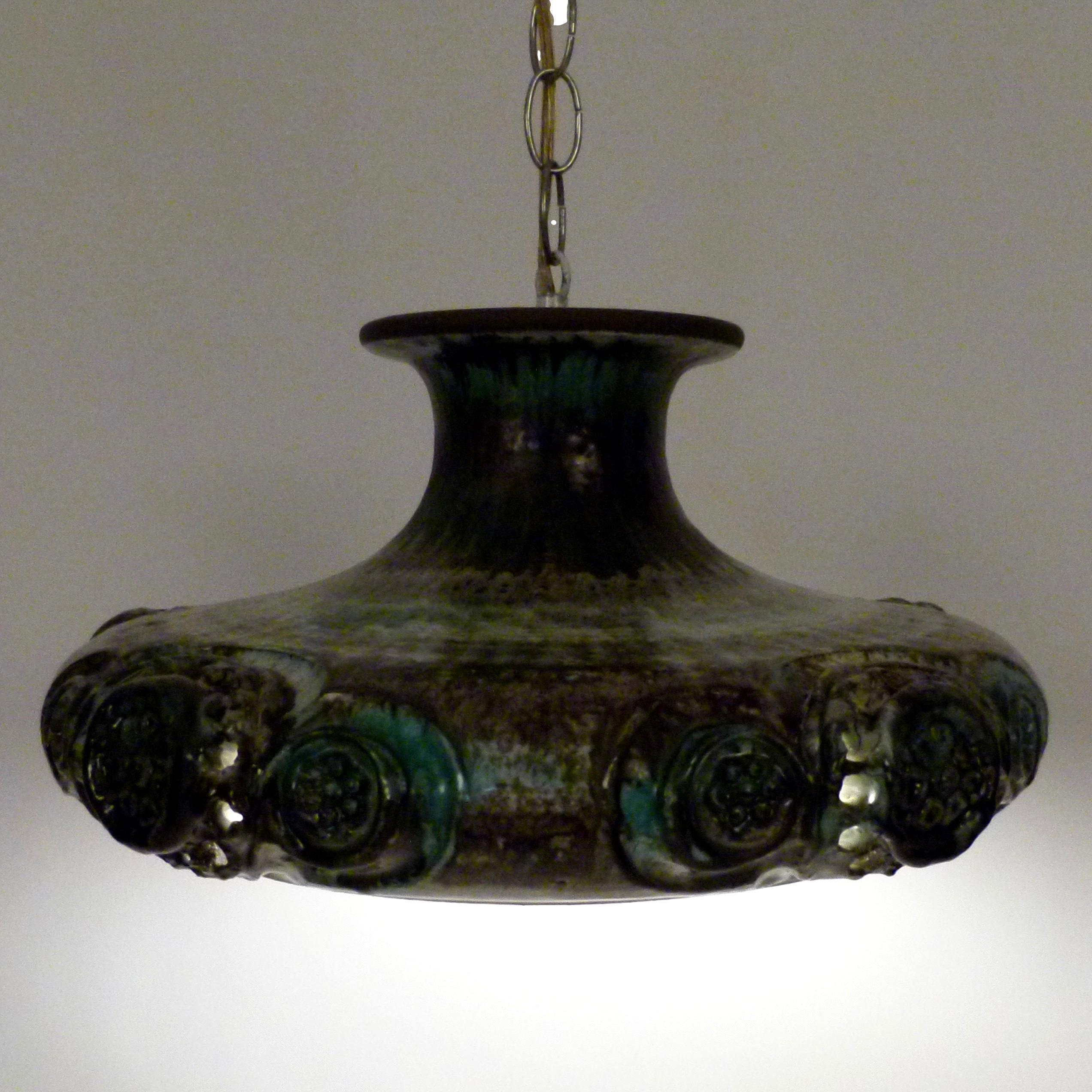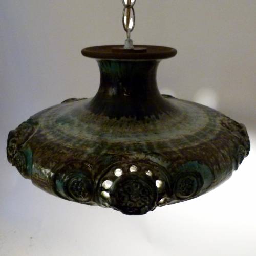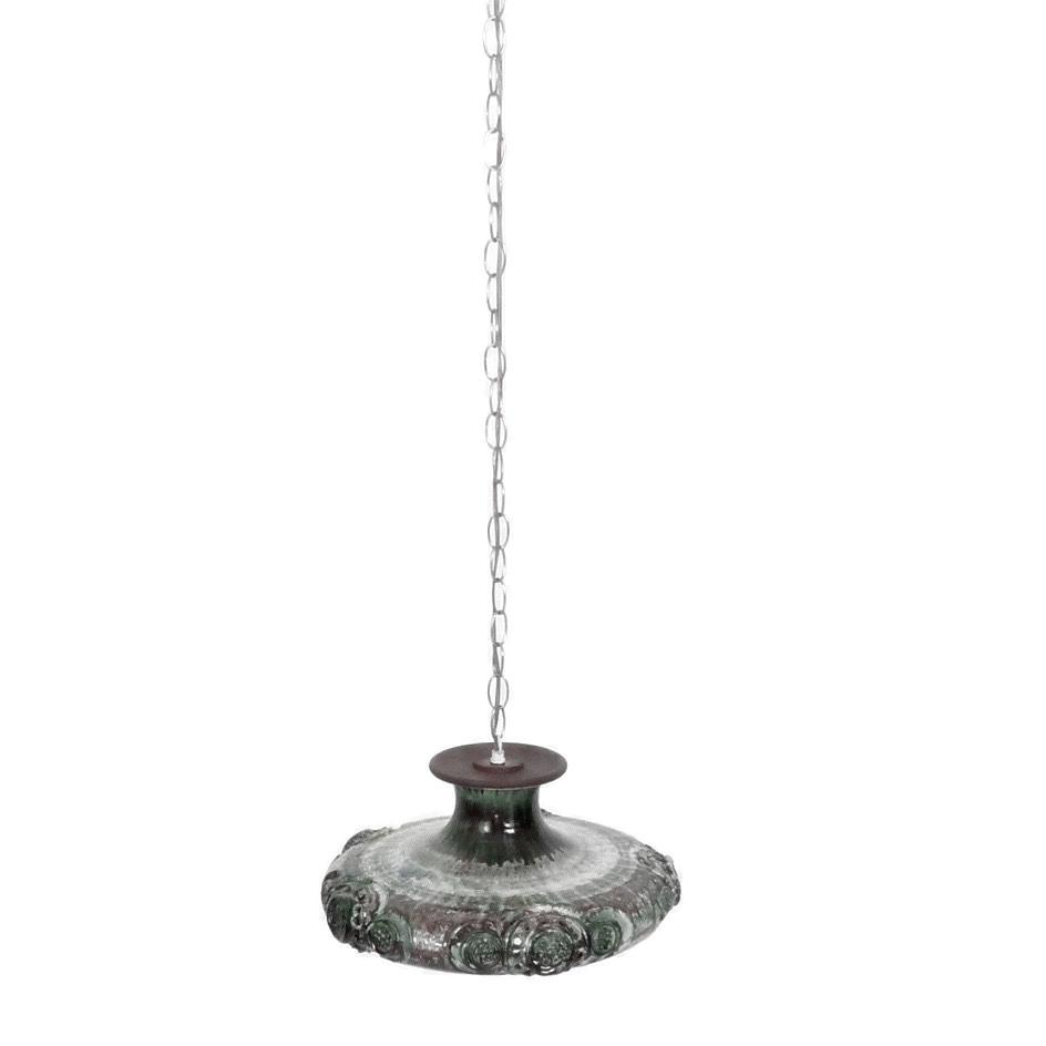 C.1970 pierced ceramic pendant from Denmark by Ib Oluf Hansen for Demstrup Keramik. New wiring.