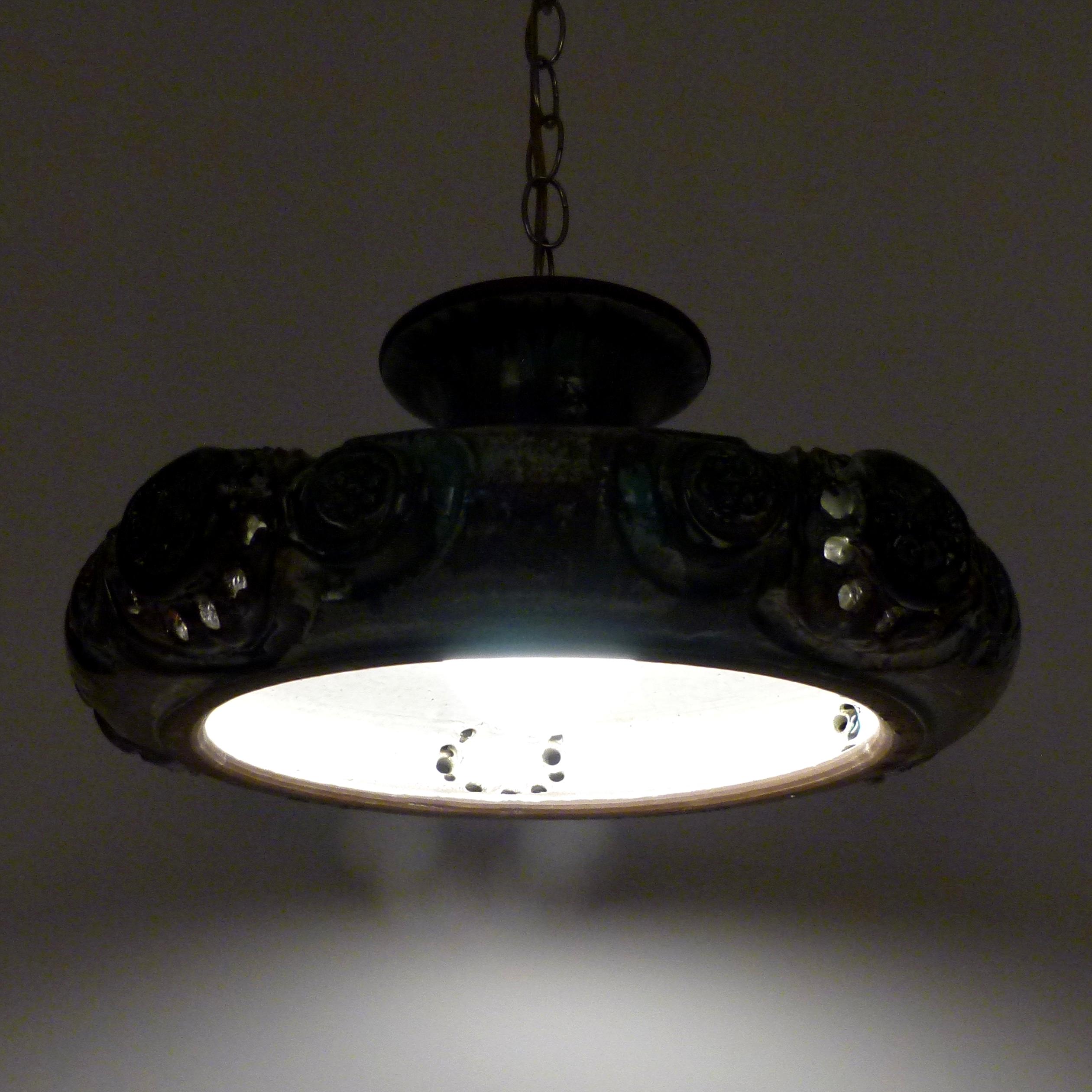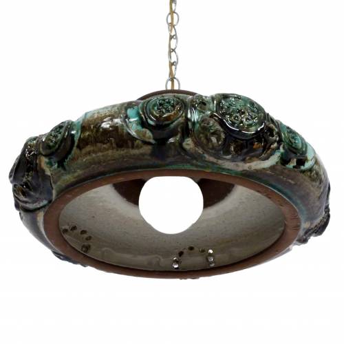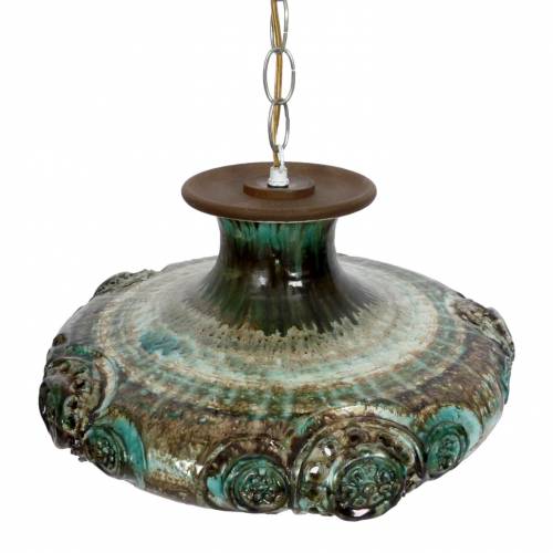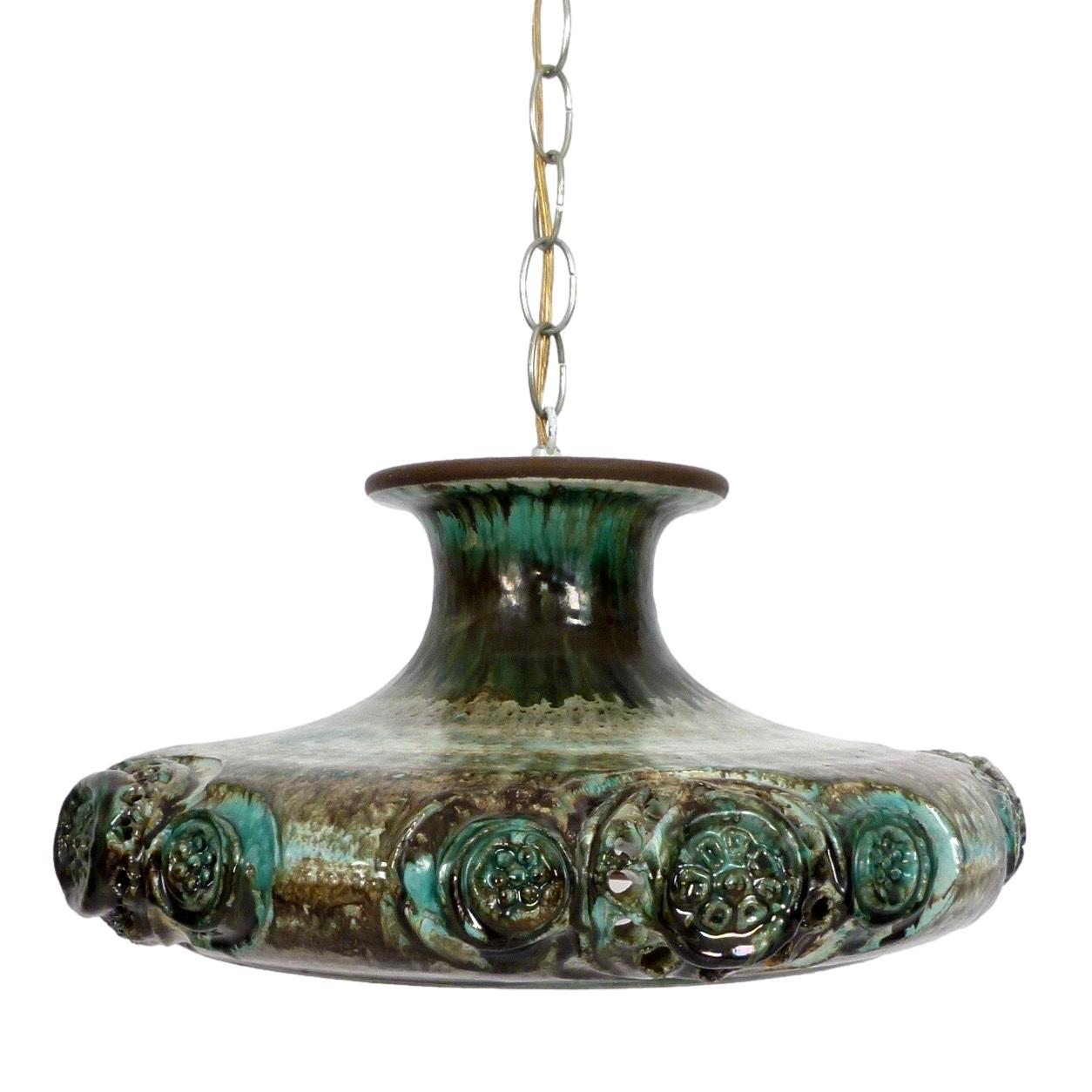 C.1970 pierced ceramic pendant from Denmark by Ib Oluf Hansen for Demstrup Keramik. New wiring.