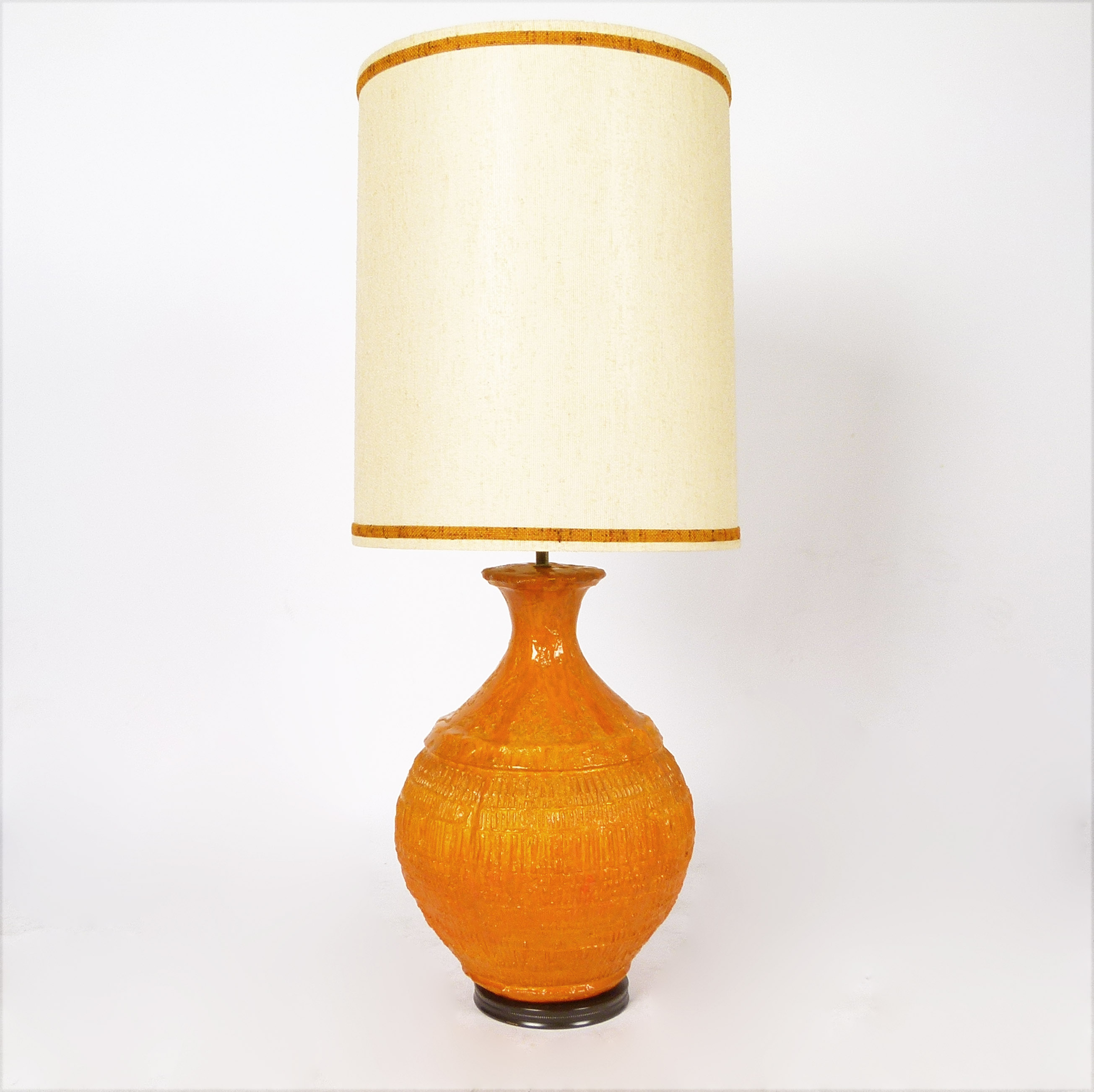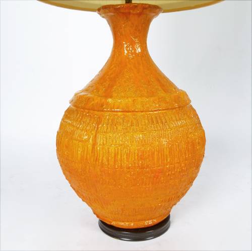 X-LG 1960s orange Italian pottery lamp with original shade.