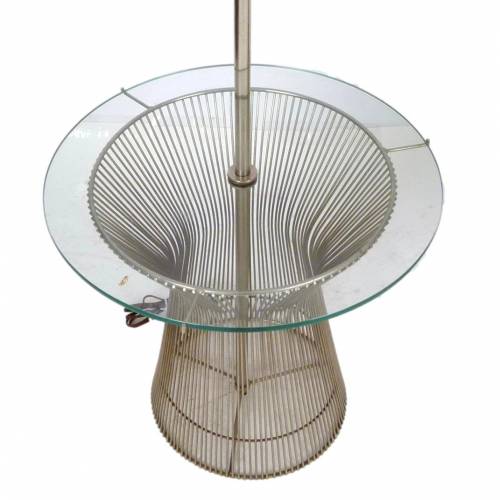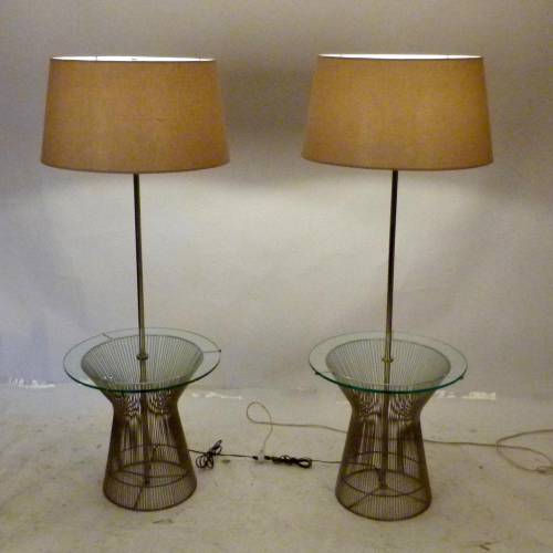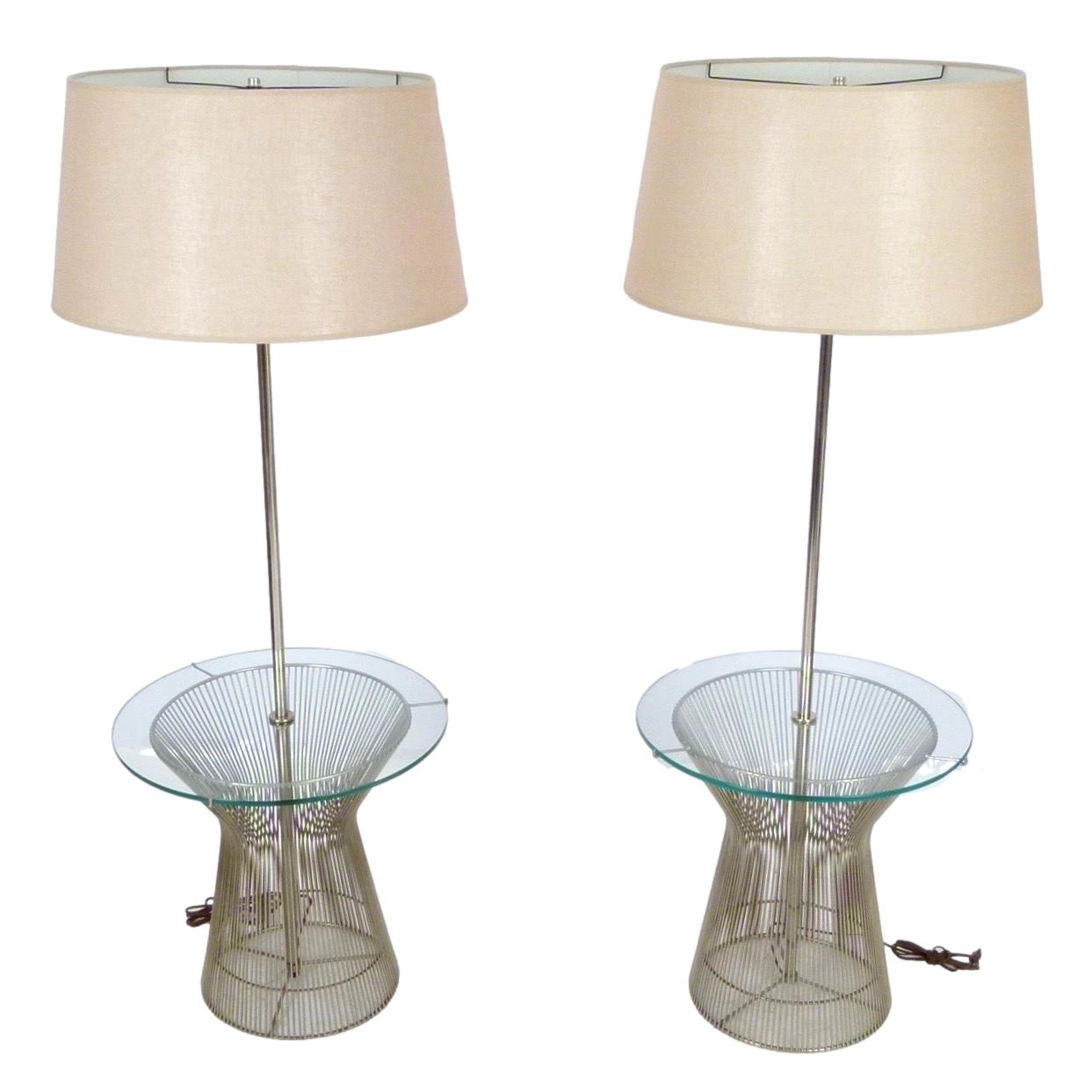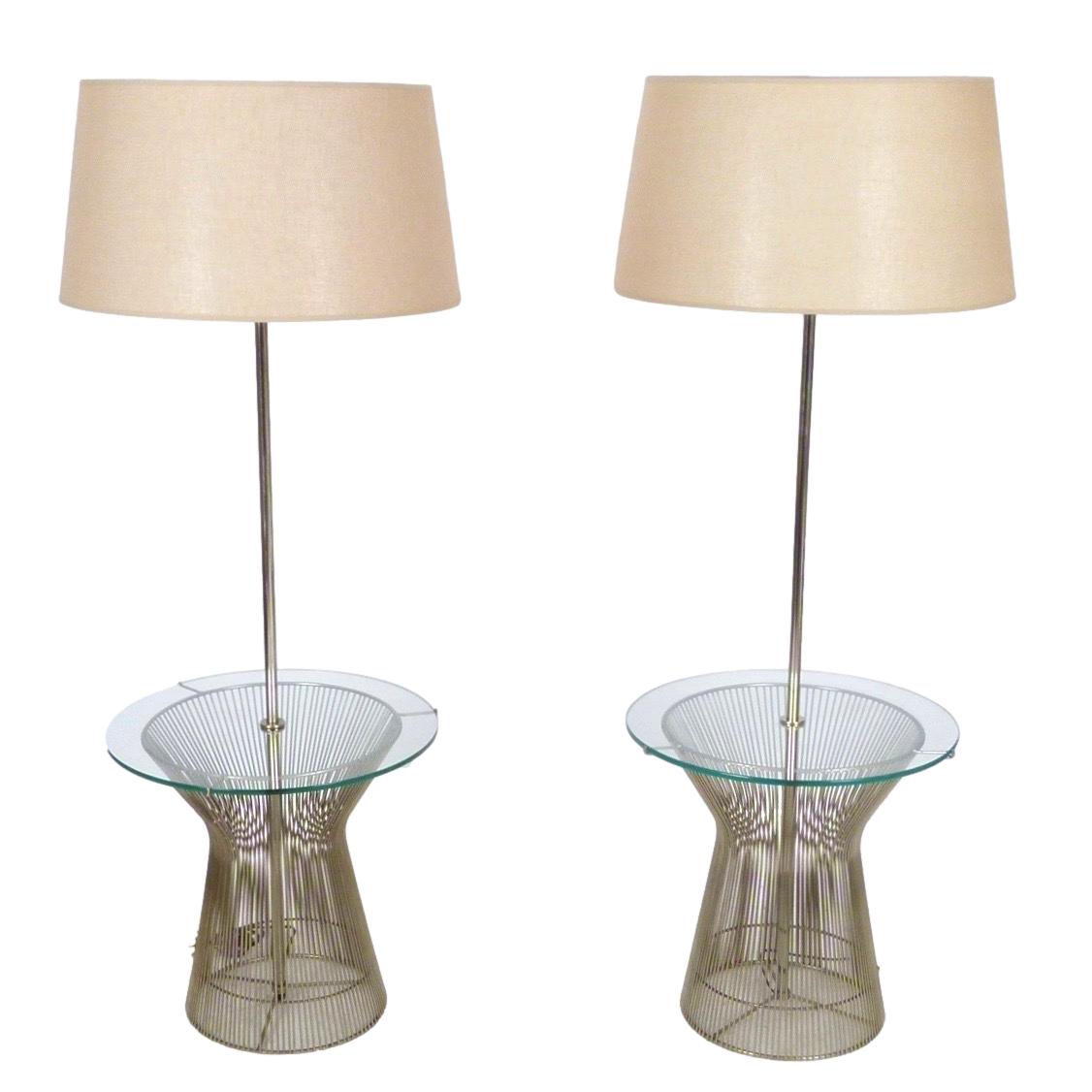 Purchase Pair of Chrome Floor Lamps With Table By Laurel