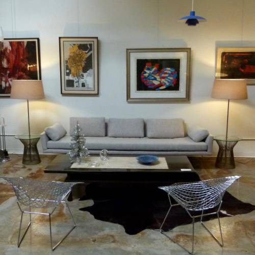 Inquire about Pair of Chrome Floor Lamps With Table By Laurel