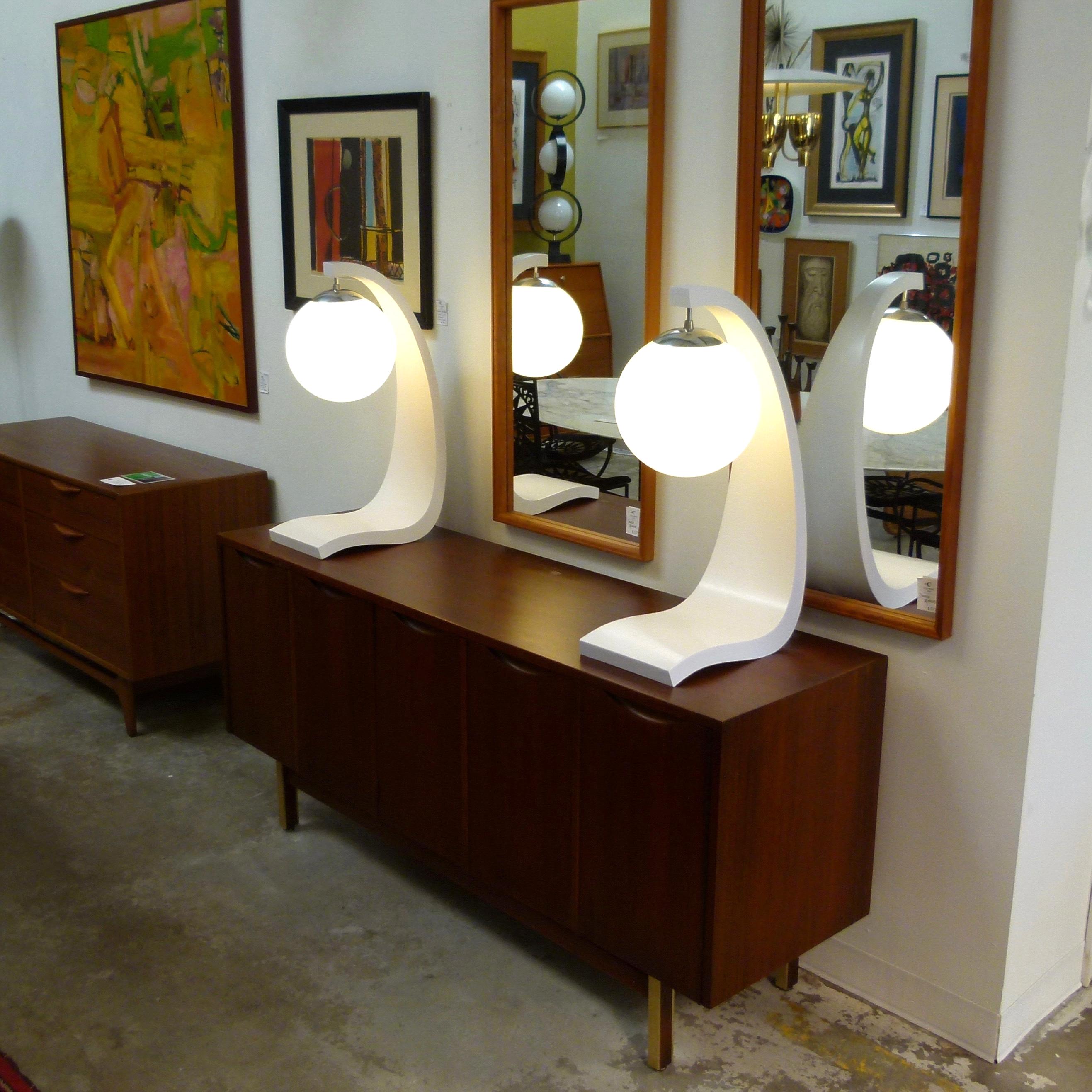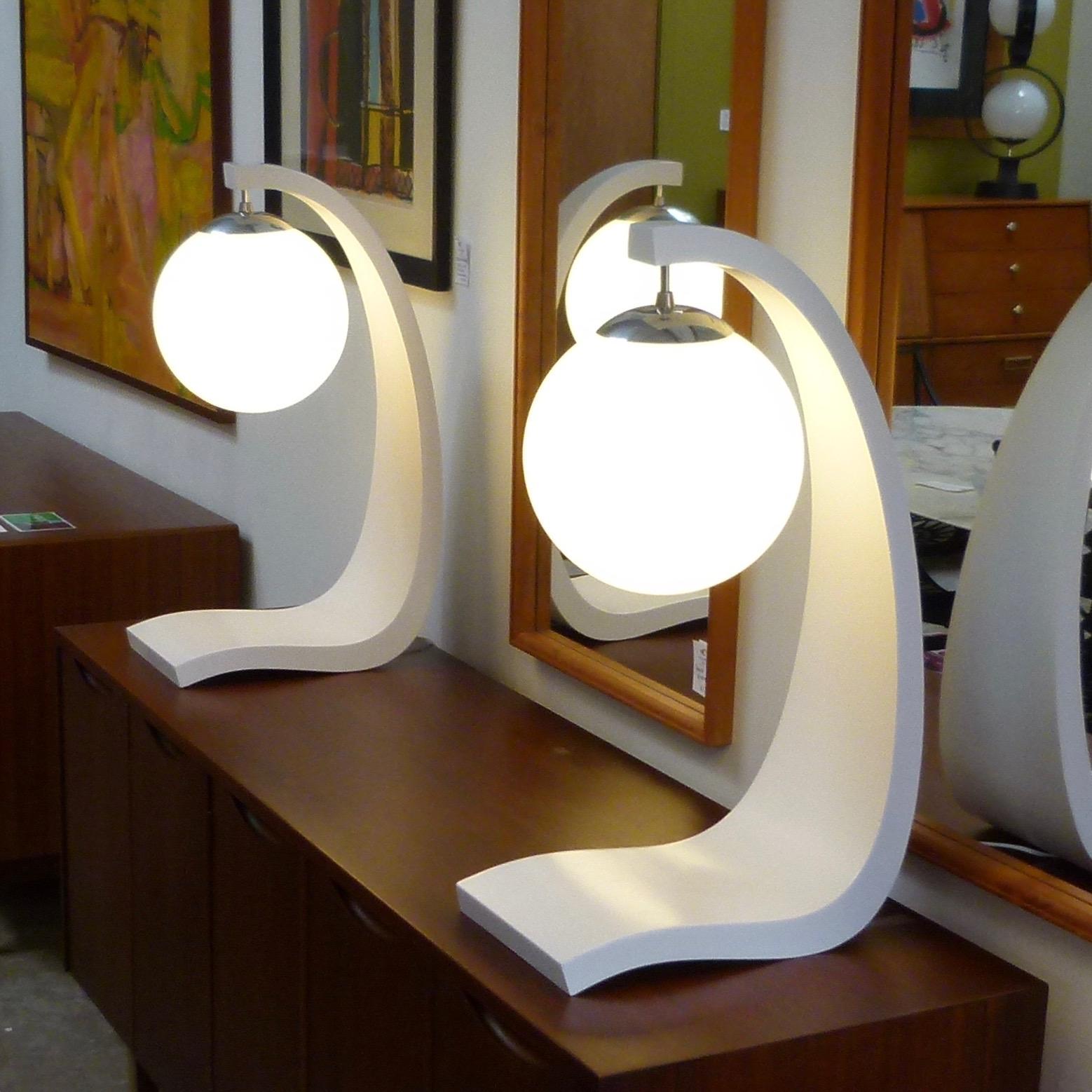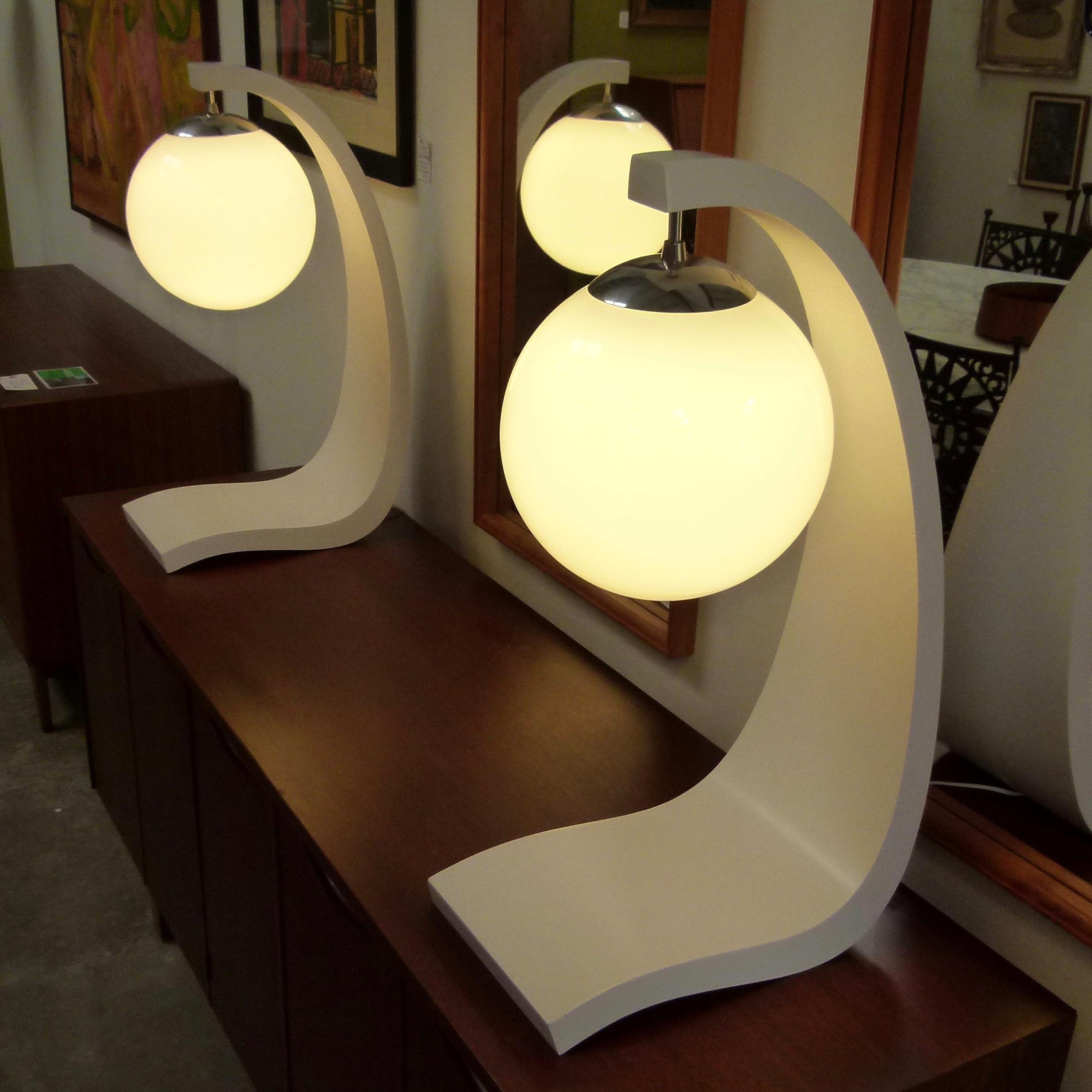 Pair of 1960s lacquered wood with glass globe lamps by Jack Haywood for Modeline of California.