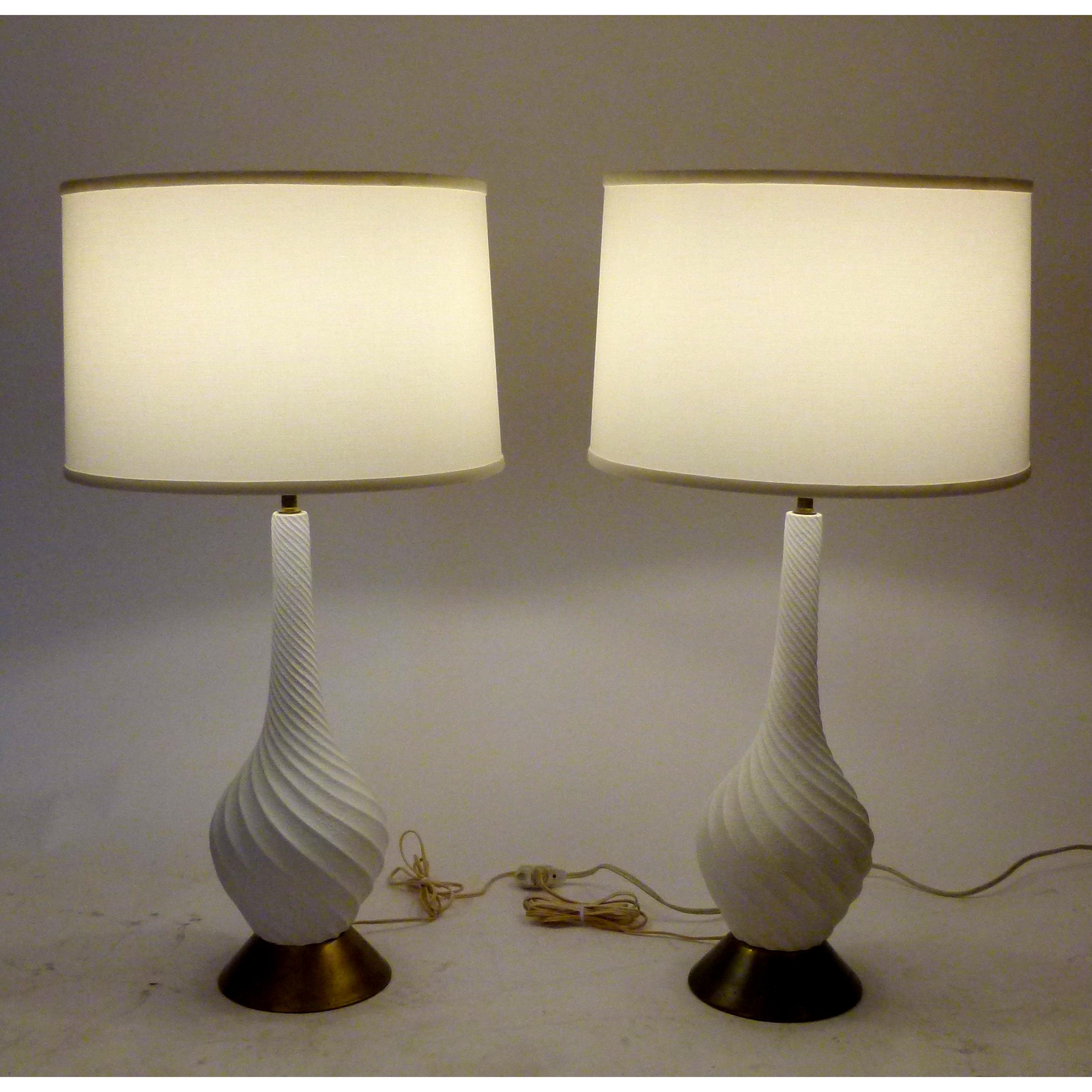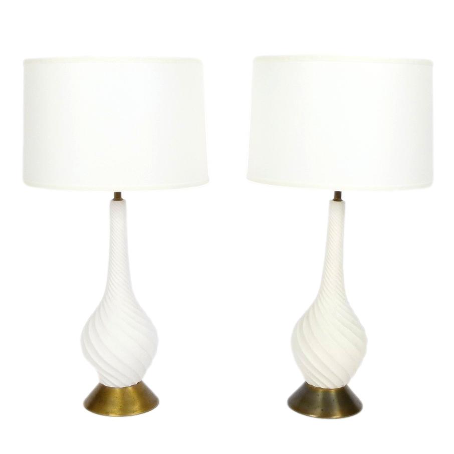 Pair of White Ceramic Spiral Design Lamps