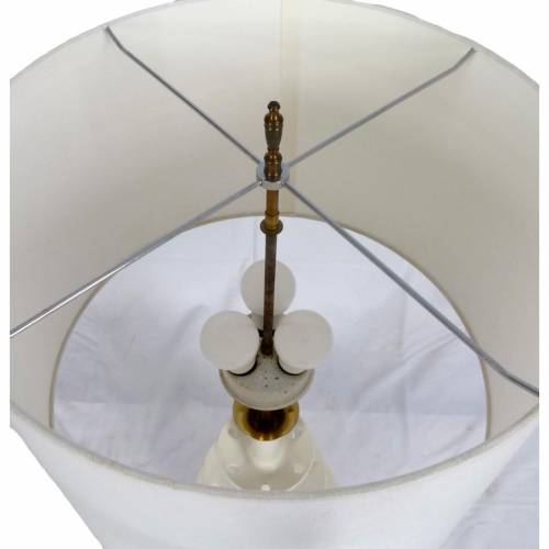 Measurements: Base- 11" diameter x 27.5"h / Total height with shade- 39.5"