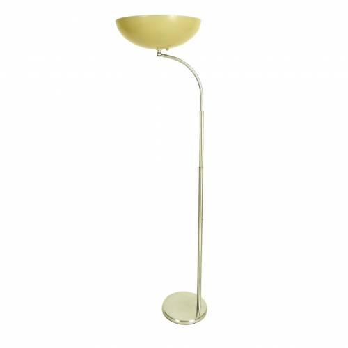 Rare c.1935 adjustable height floor lamp with early brushed stainless body and baked enamel shade (that can be flipped to make it a torchiere) and 3-way switch by Walter Von Nessen for Nessen Studio.