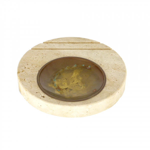Travertine and Brass Dish by Fratelli Mannelli