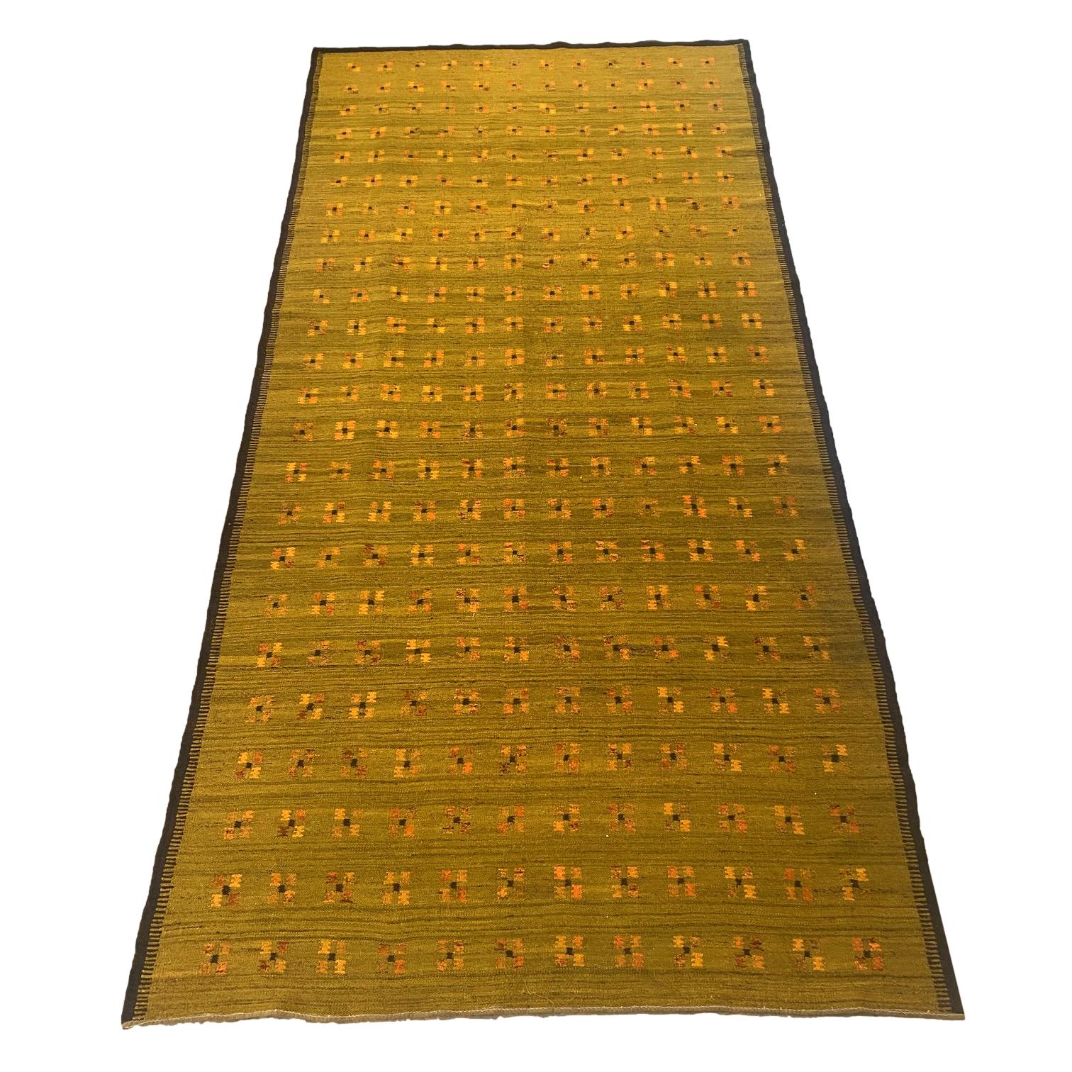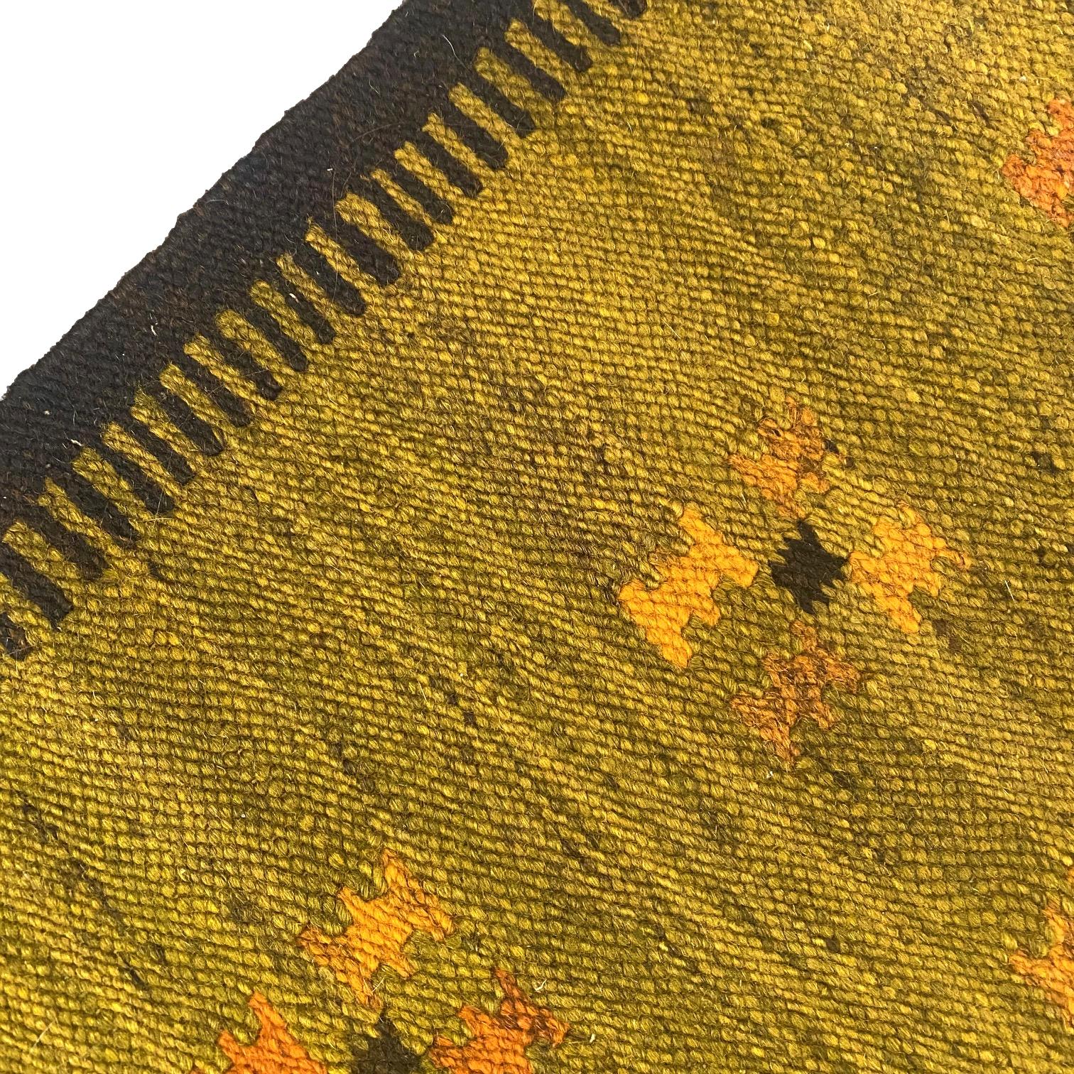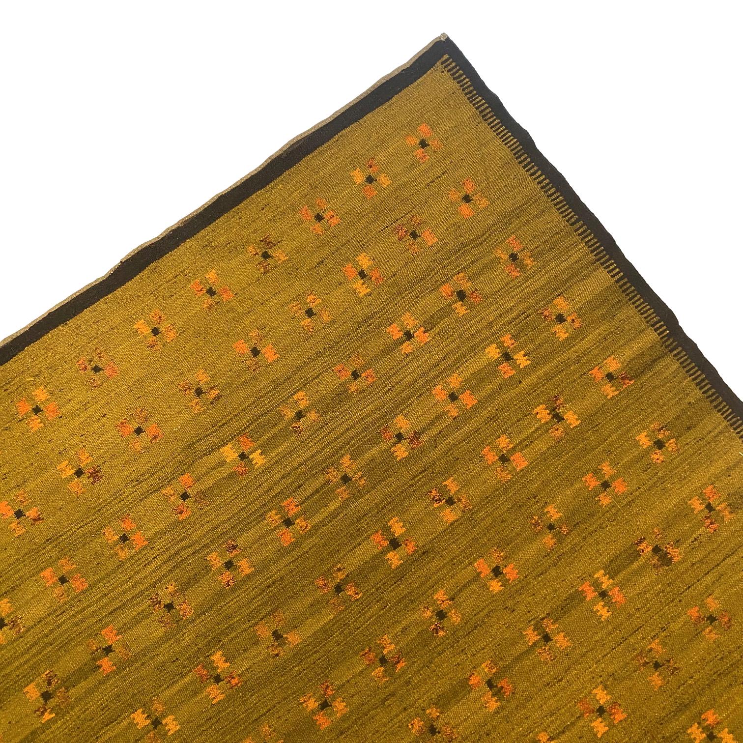1960s Scandinavian flat weave rug with geometric pattern.