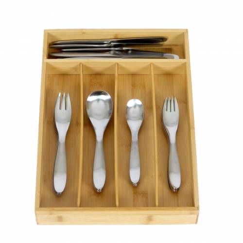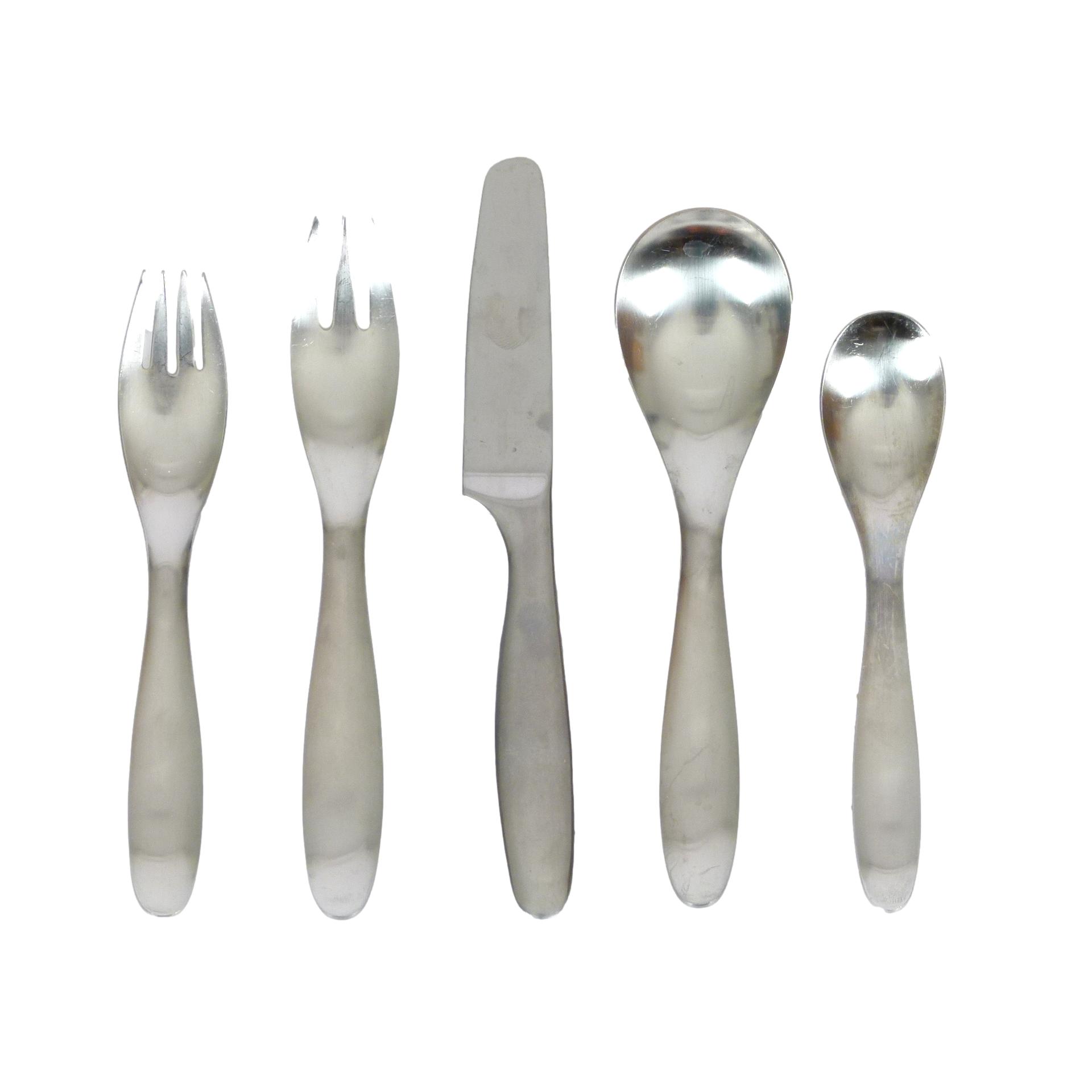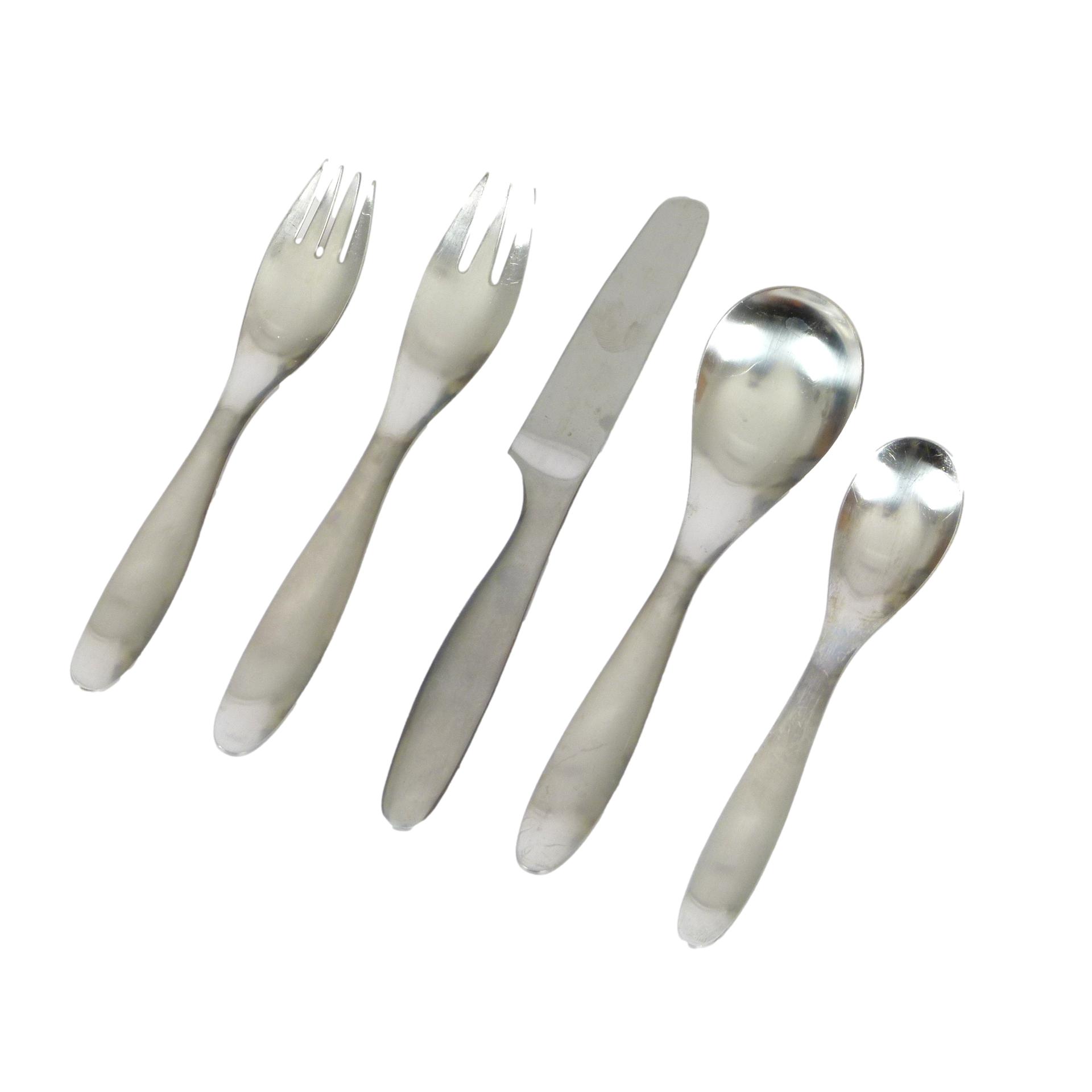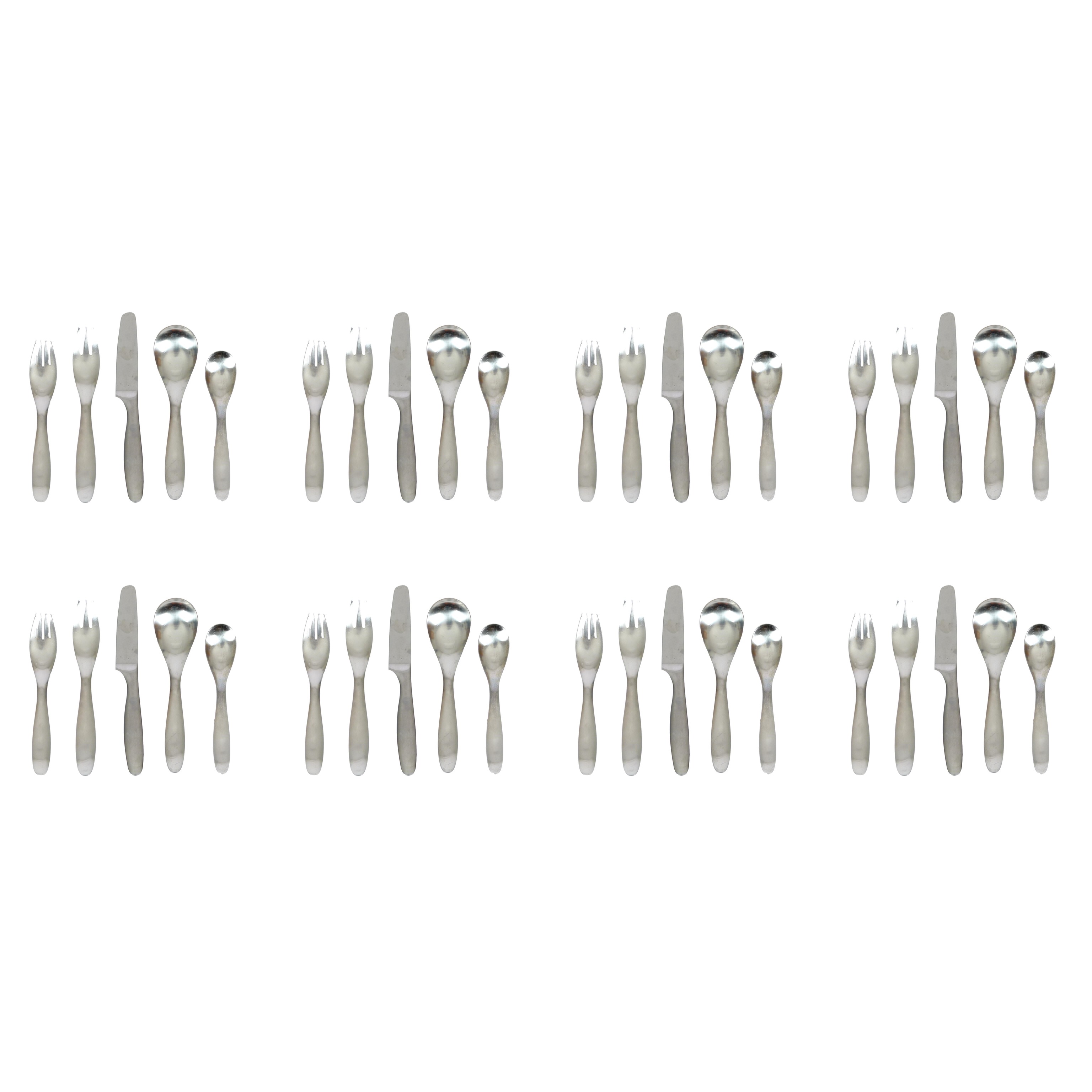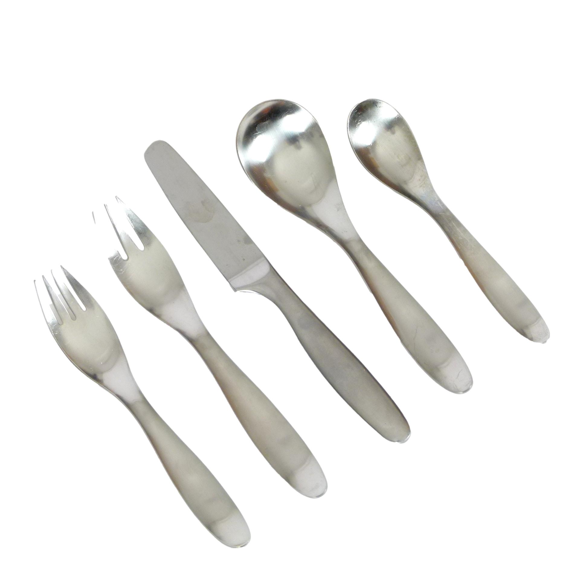1970s Lauffer "Design 9" flatware designed by Don Wallace, Finland. 5-piece place setting for 8.