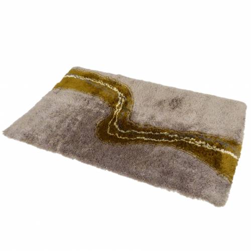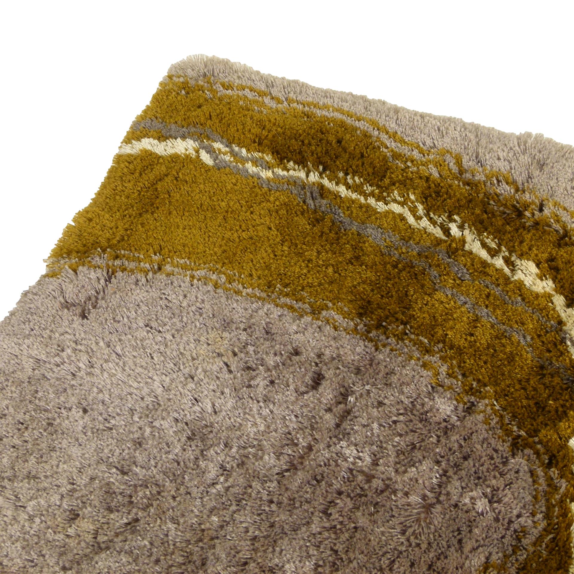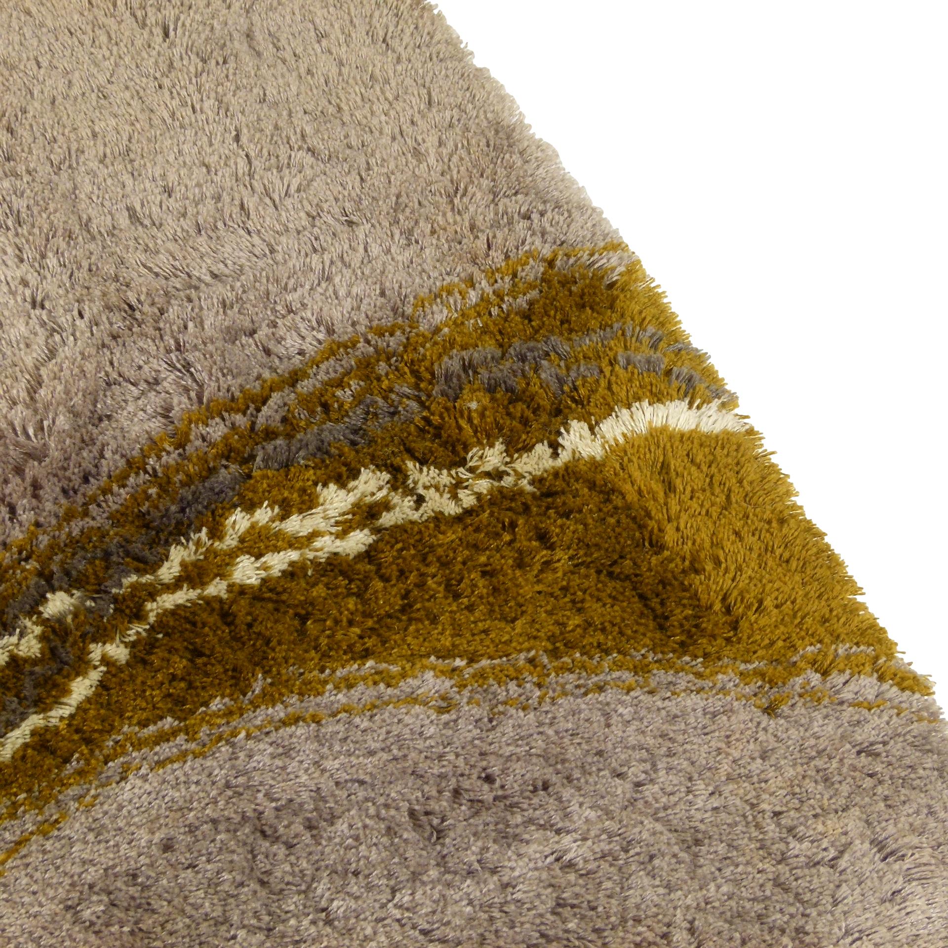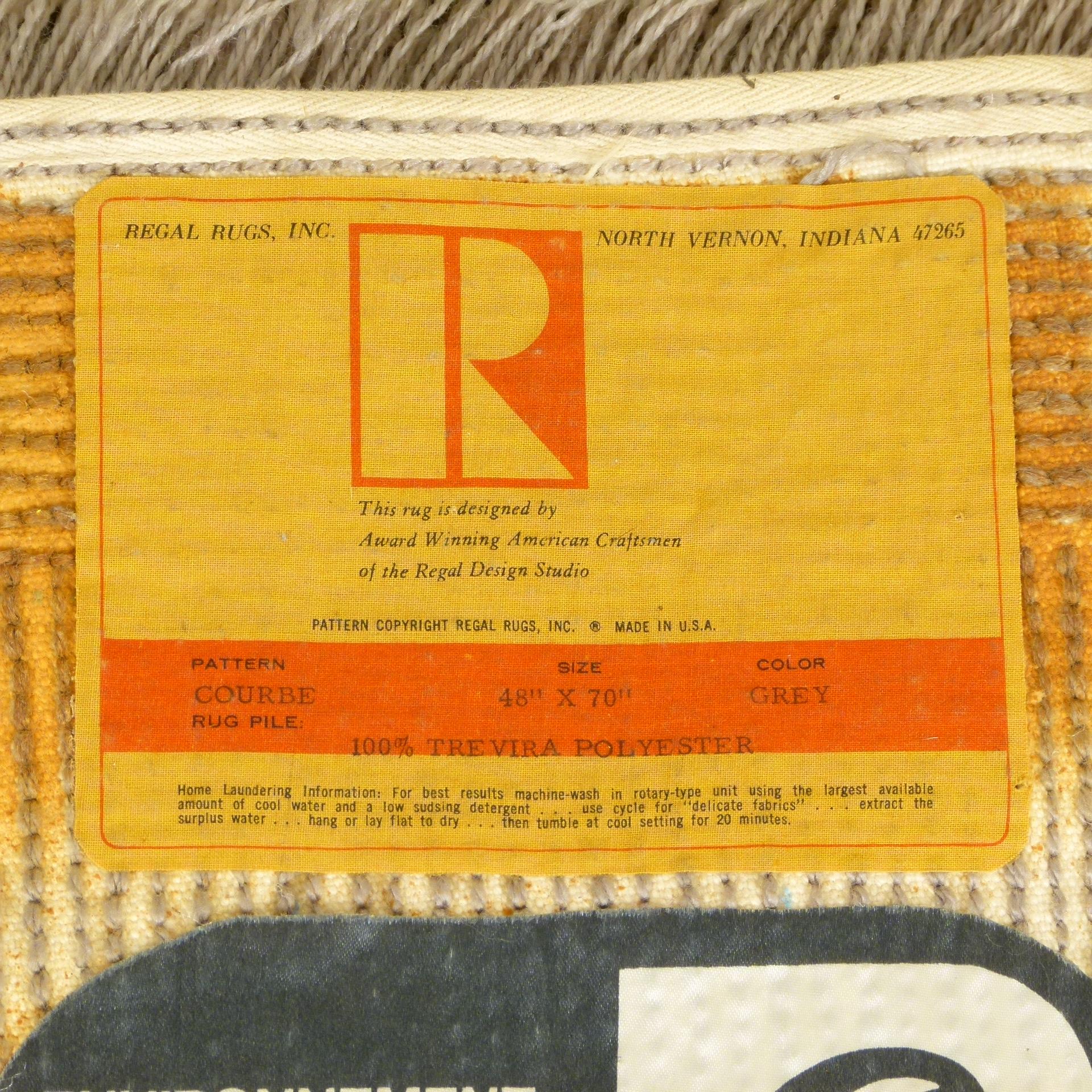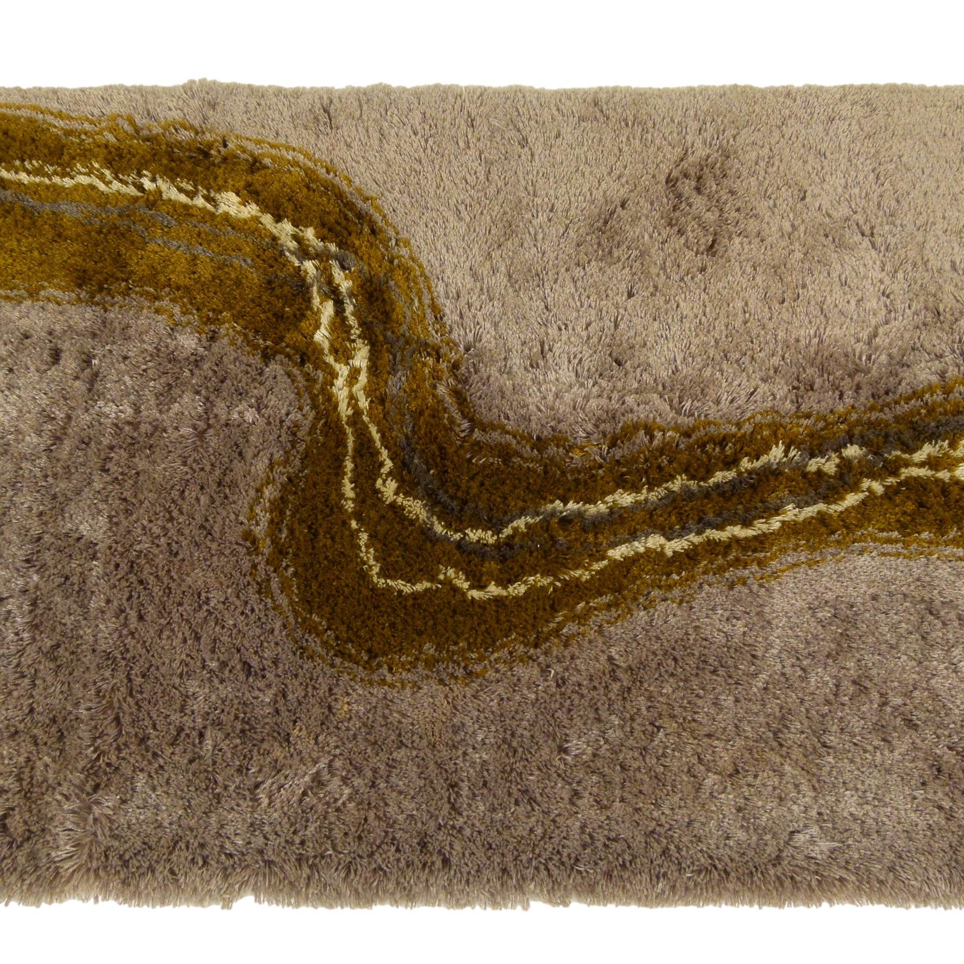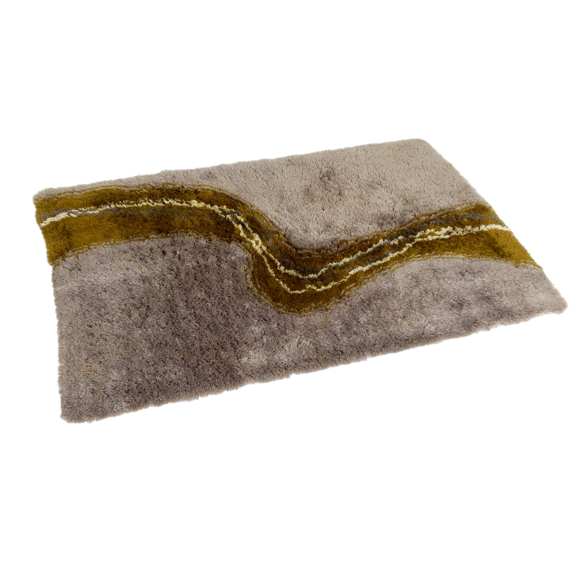 1970s Pierre Cardin high pile "Courbe" rya rug in neutral grays and greens.