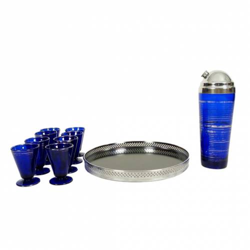 Purchase Art Deco Cobalt Blue Glass Cocktail Set
