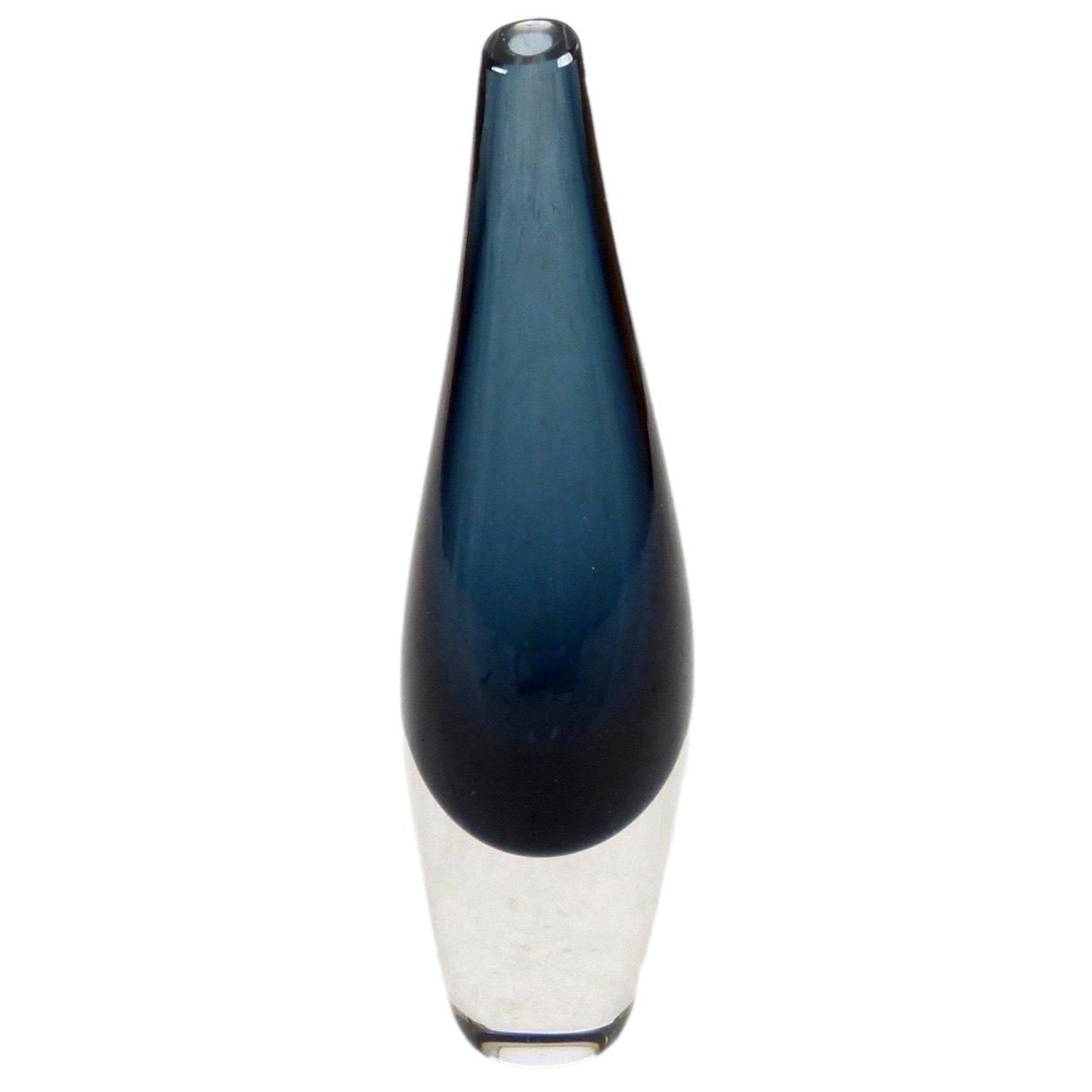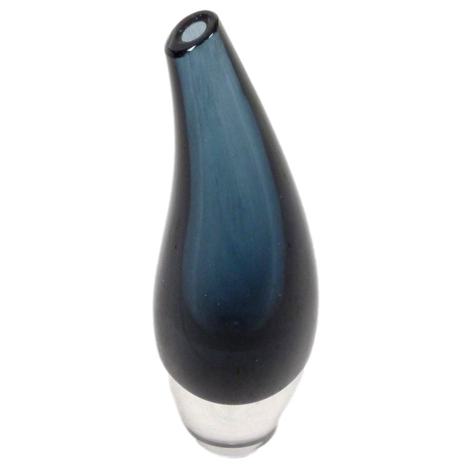C.1957 blown blue and clear glass "Kalanrakko" vase from Finland by Tapio Wirrkkala for Iittala, signed.