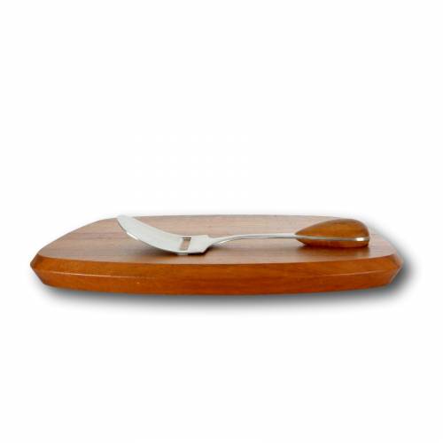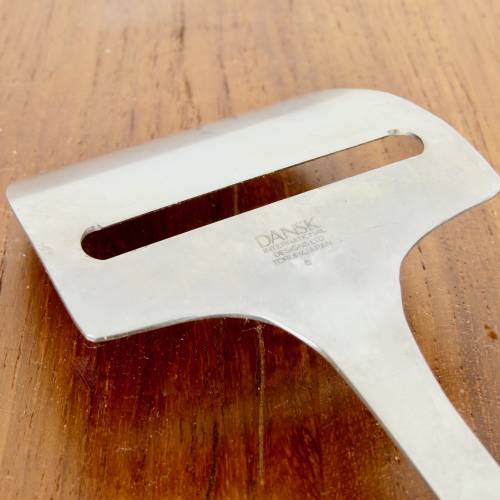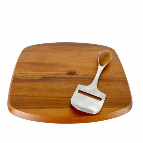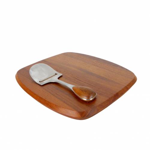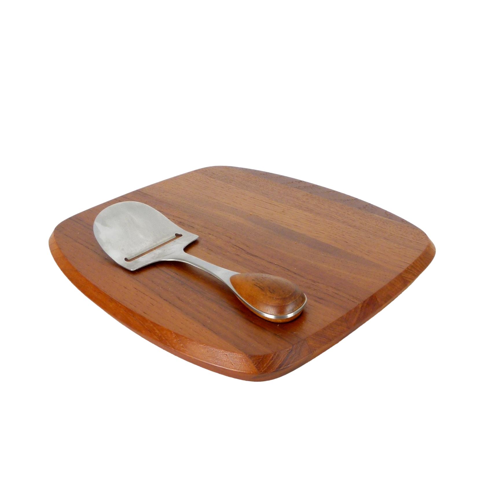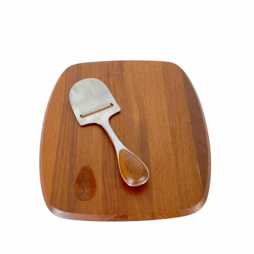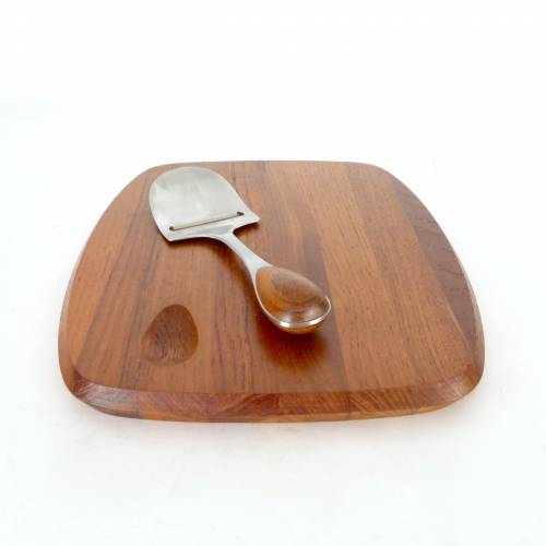 Vintage solid teak board with integrated notch to hold accompanying cheese slicer. Designed by Vivianna Torun for Dansk, Denmark.