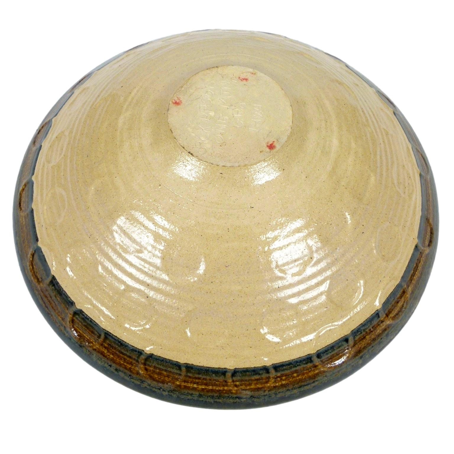 Signed, large 1984 studio stoneware bowl by Jack Mason (1930-1986) from Stone Mountain, GA.