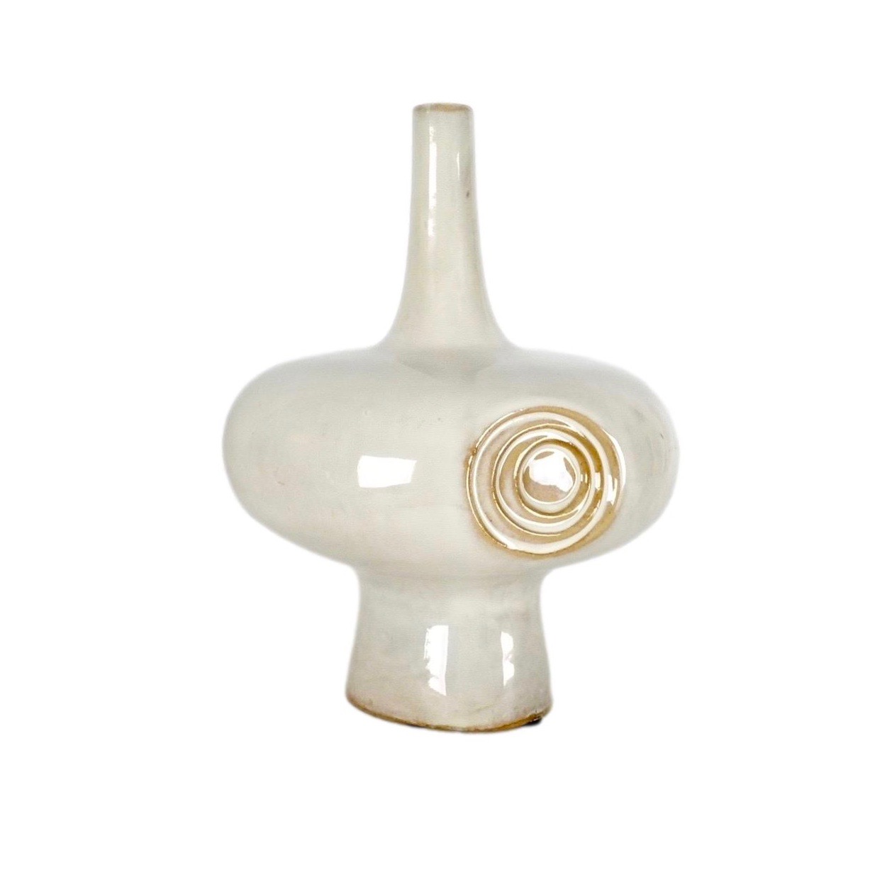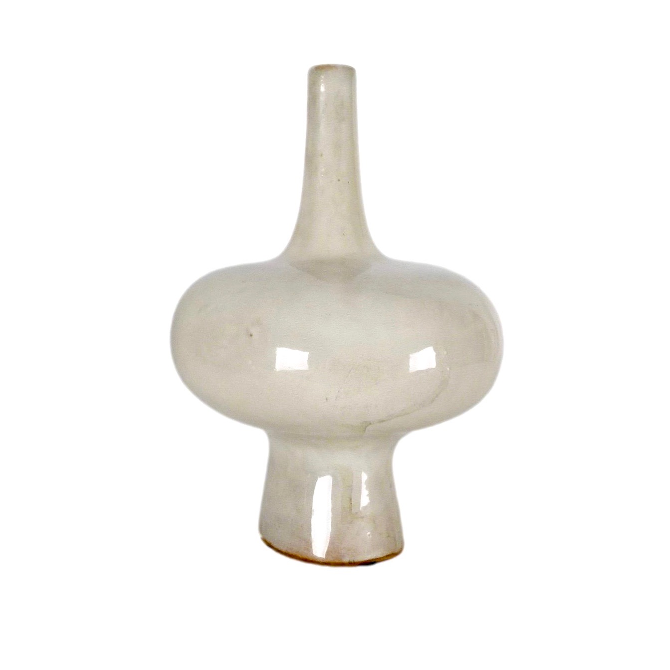 Vintage modernist stoneware ceramic vase with beautiful off-white glaze.