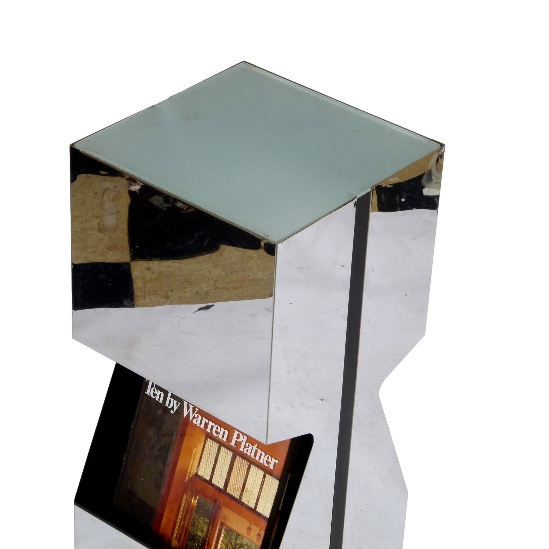 1970s Neal Small For Kovacs chrome illuminated pedestal with magazine/book storage.