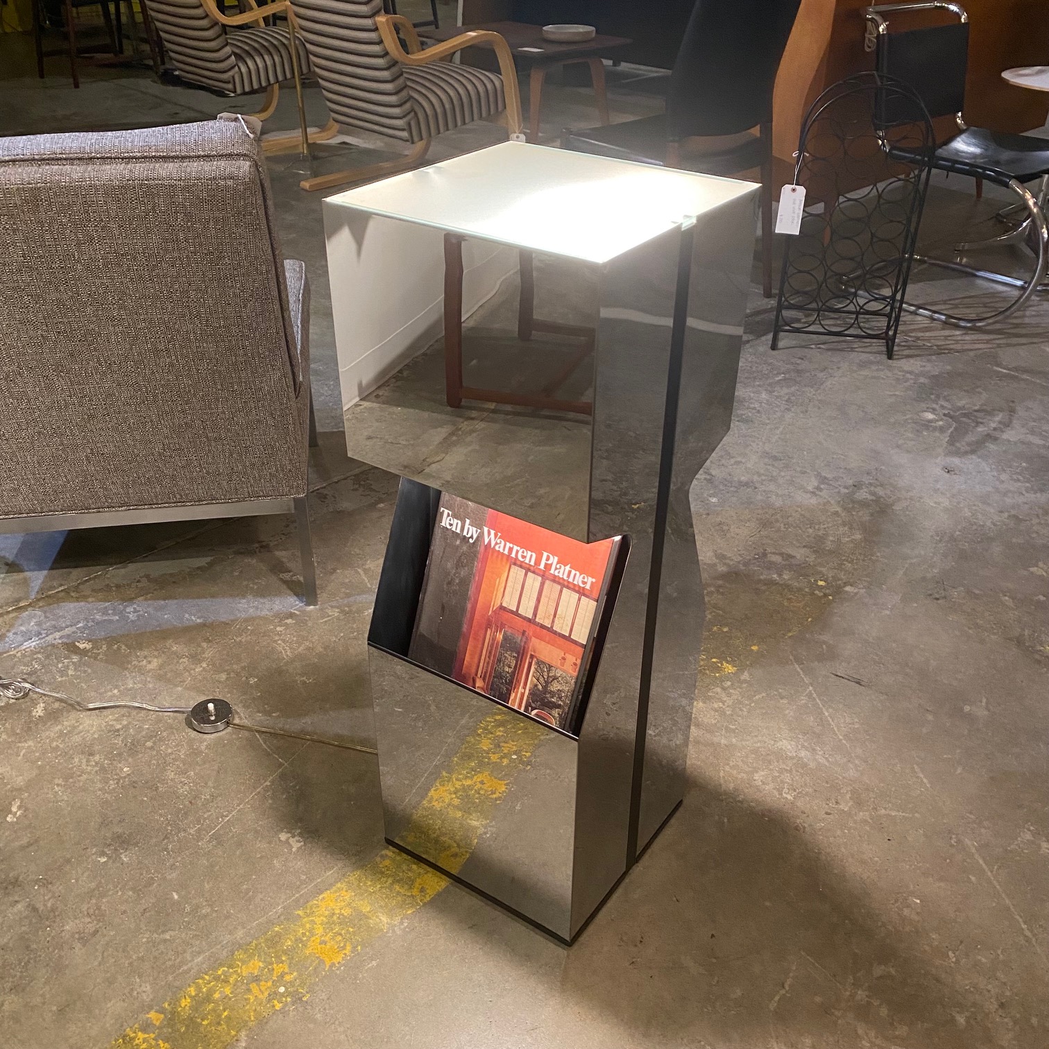 Neal Small For Kovacs Chrome Illuminated Pedestal & Magazine Rack
