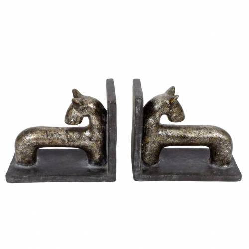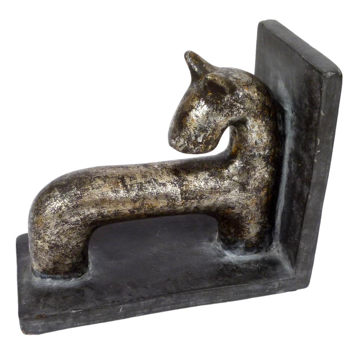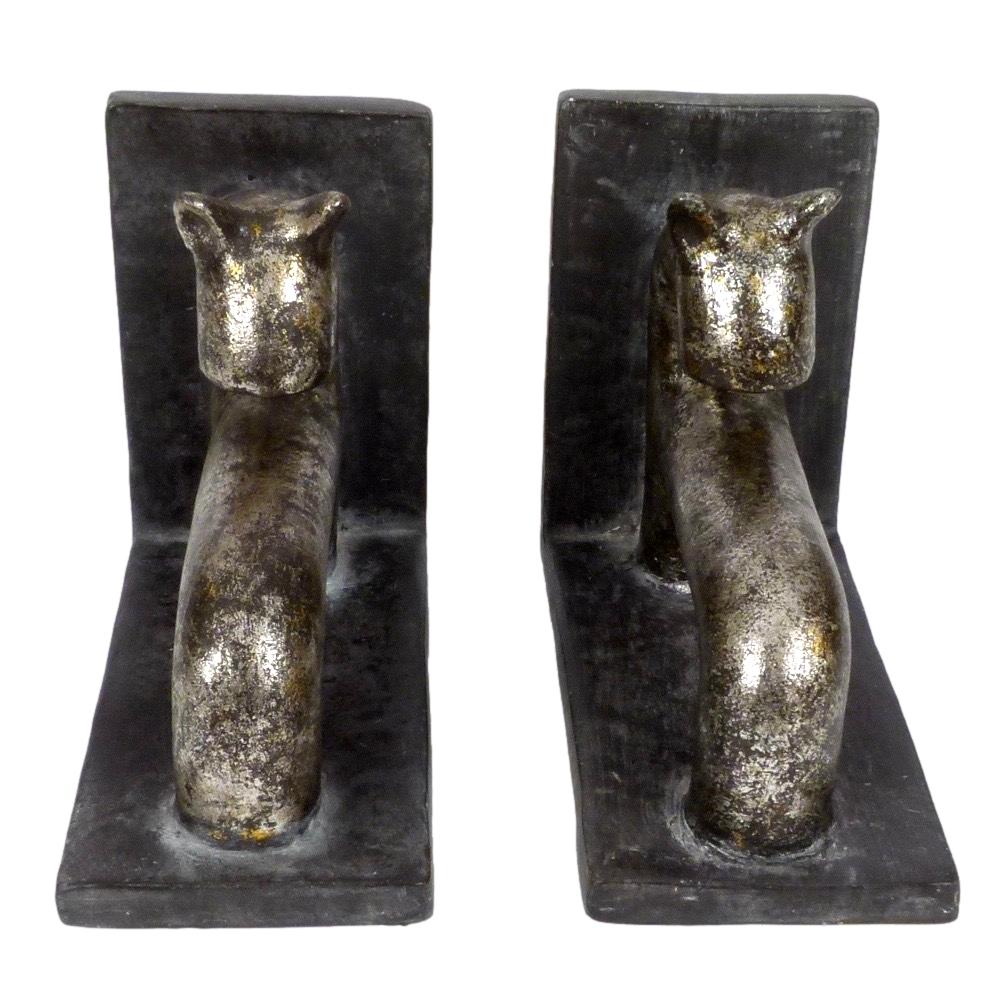 Rare pair of c.1950 ceramic bookends from France with zoomorphic figures and mottled silver glaze.