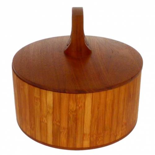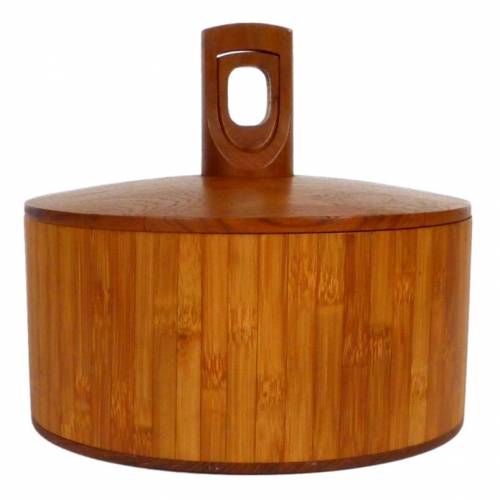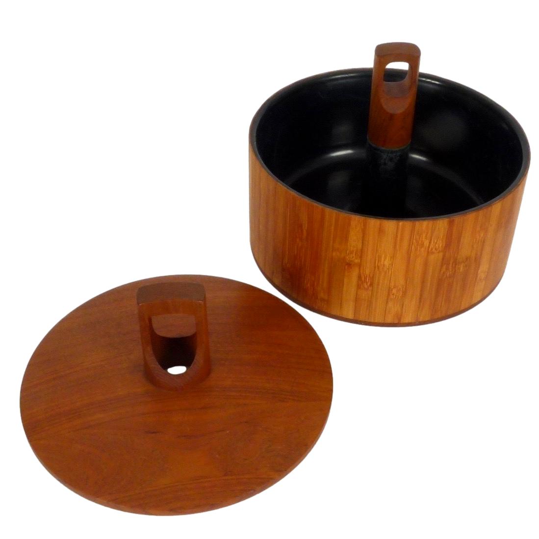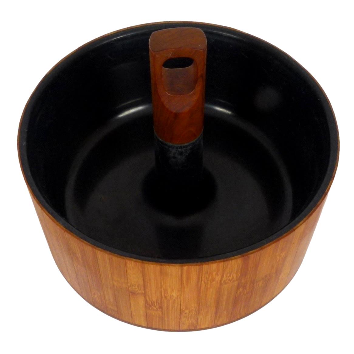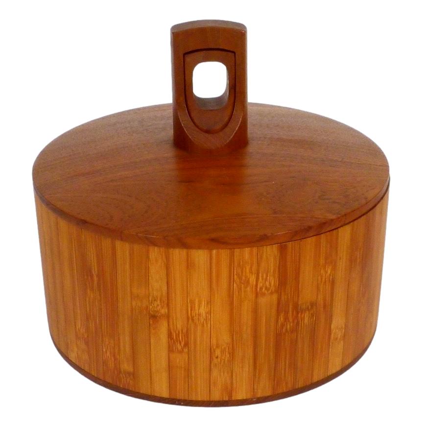 1960s teak and bamboo "Rare Woods" ice bucket from Denmark by Jens Quistgaard for Dansk.